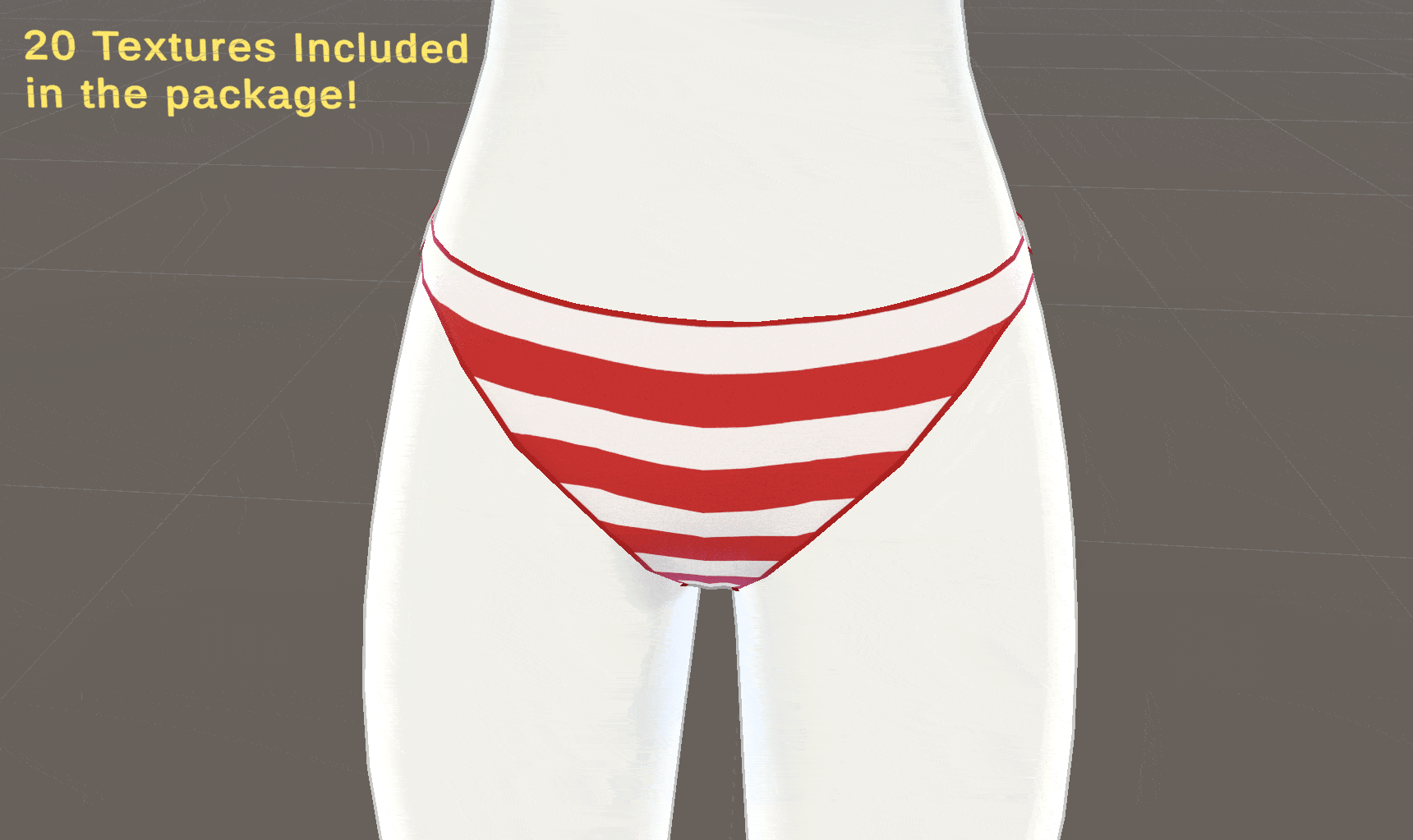 Also Includes 20 PNG textures for different colors and designs, and a optional latex material that can be dragged onto the mesh from the assets folder.