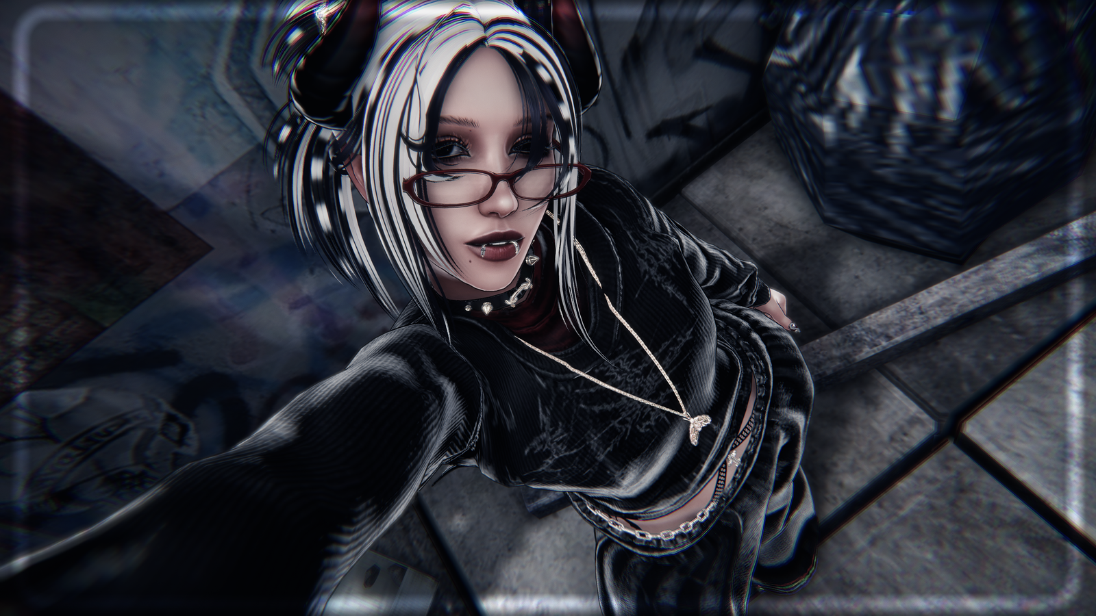 VRBase by Zinpia ・ Athena Head, Cross Pasties by Xero3D ・ SkinnyGlasses by Nessy! ・ Matcaps, Icons by AWMI ・ Hair Tex by CicieaaaVR ・ Flows by GM'sbox ・ Hair Matcap by Pirranhaz ・ Isla's Hair, Ichika's Hair, Suzume's Hair, Cici Texture Edits by Saikura ・ Kira's Messy Bun by Tink3D ・ Kitty Gang, Crimson Care by Vinuzhka ・ S4d G1rl Set by Miriaaam ・ [FILE://RΞDA͠C͜ŦΞD] Tattoos by SmolUni ・ Miss Me Nails by Suki ・ EdgySet by Bunisu3D ・ Boots Metal Hands by Sebs ・ Grungefit by BruceVR ・ Heartbreaker Set by Catakitty ・ Lighter Palm & Sole Addon by PinkyChan ・ Heartforged Demon Wing & Tail Set by The Thicc Witch ・ Scarlett Hotdog by ScarlettKat ・ Scarlett Hotdog Textures by Senespera
