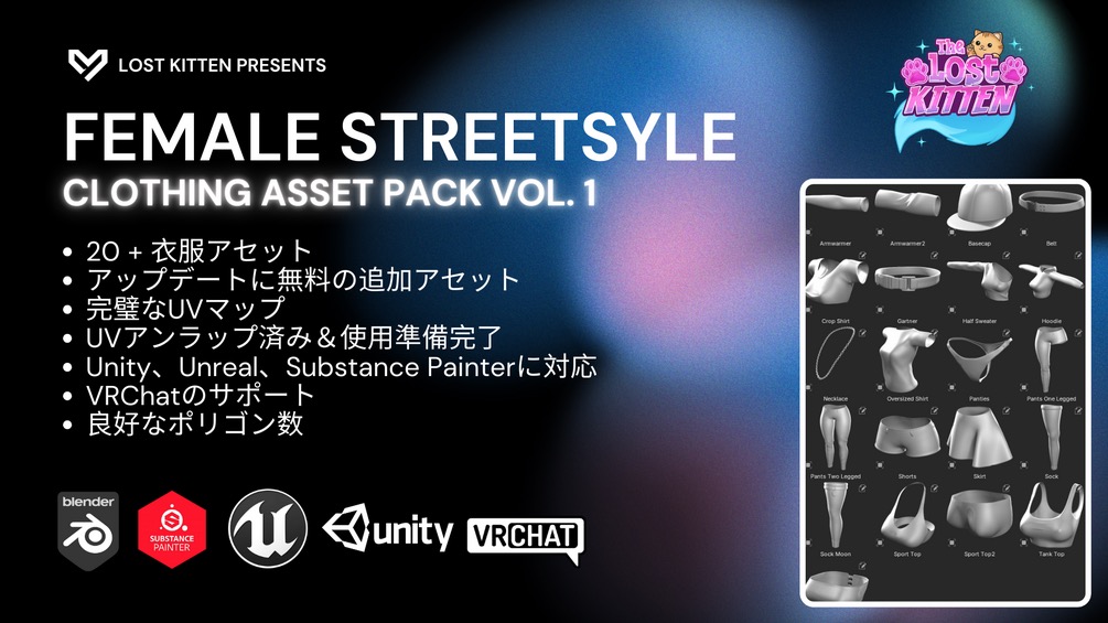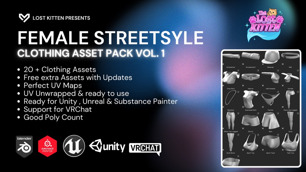 Elevate your characters style with our comprehensive Blender clothing asset package, "Female Streetstyle". This collection of 20+ high-quality outfits is designed to provide endless possibilities for creating realistic and believable characters in your 3D projects.