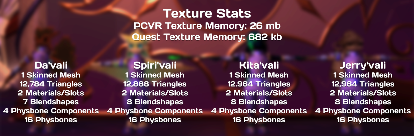 This outfit is designed for use with the Da’vali, Spiri’vali, Kita’vali, and Jerry’vali VRChat models.