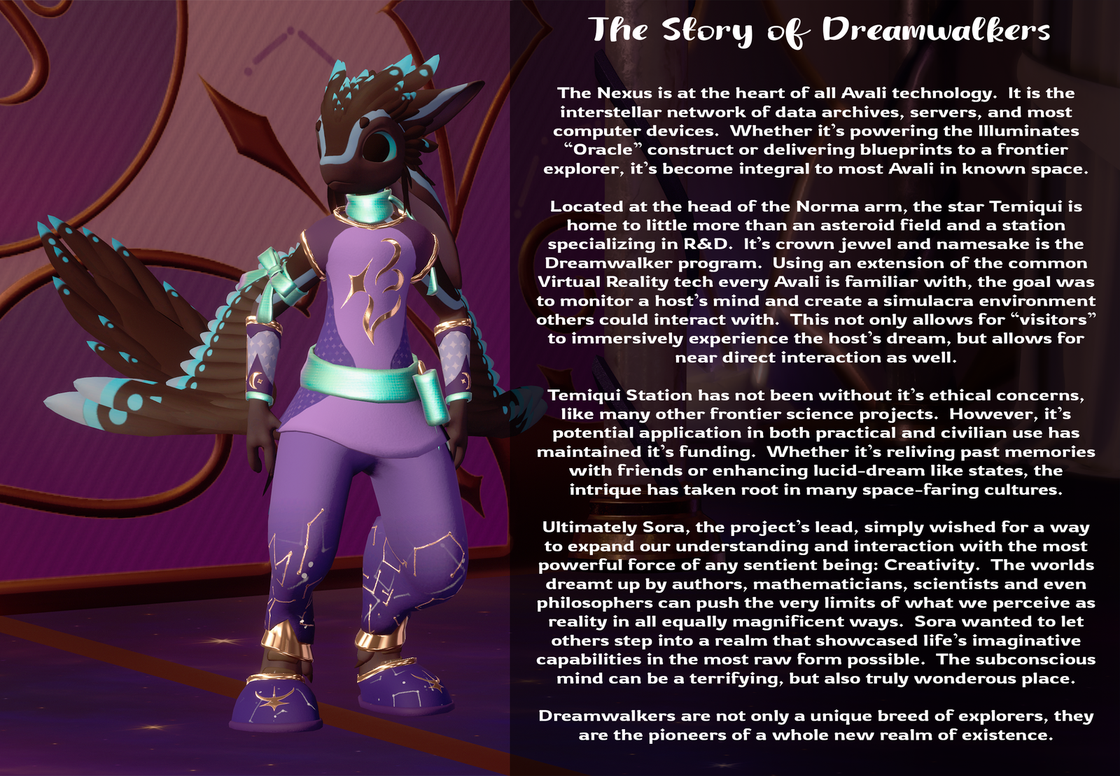 The Dreamwalker outfit is inspired by Furality Somna but is not affiliated with Furality Inc.
