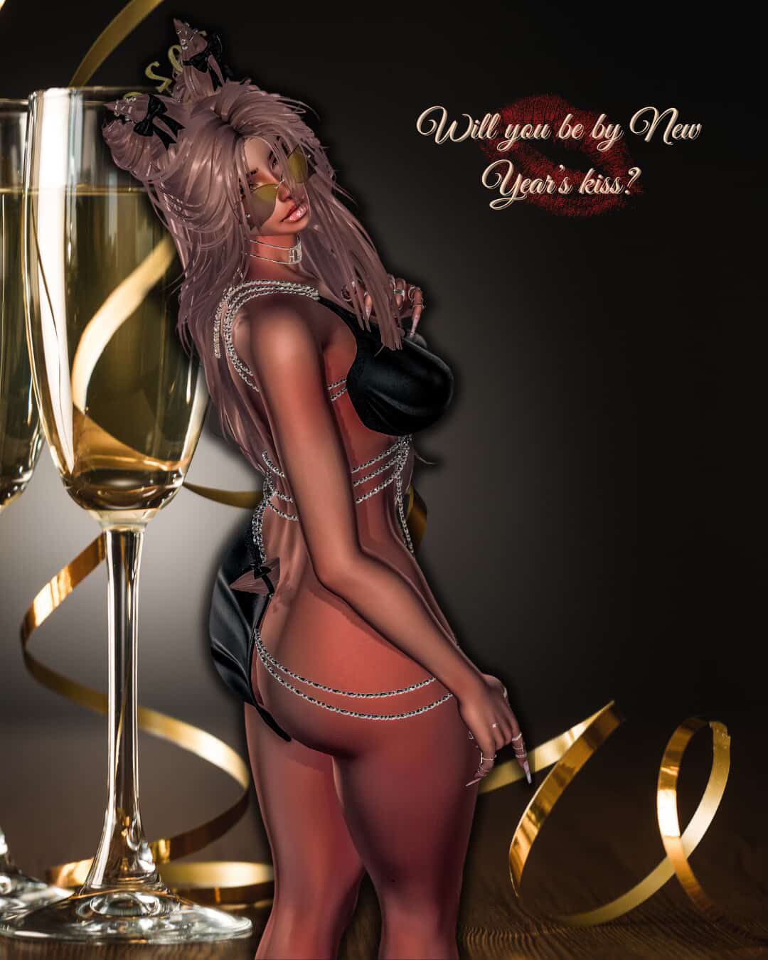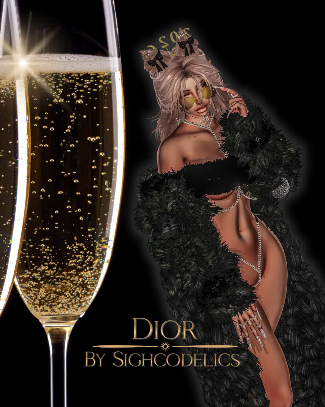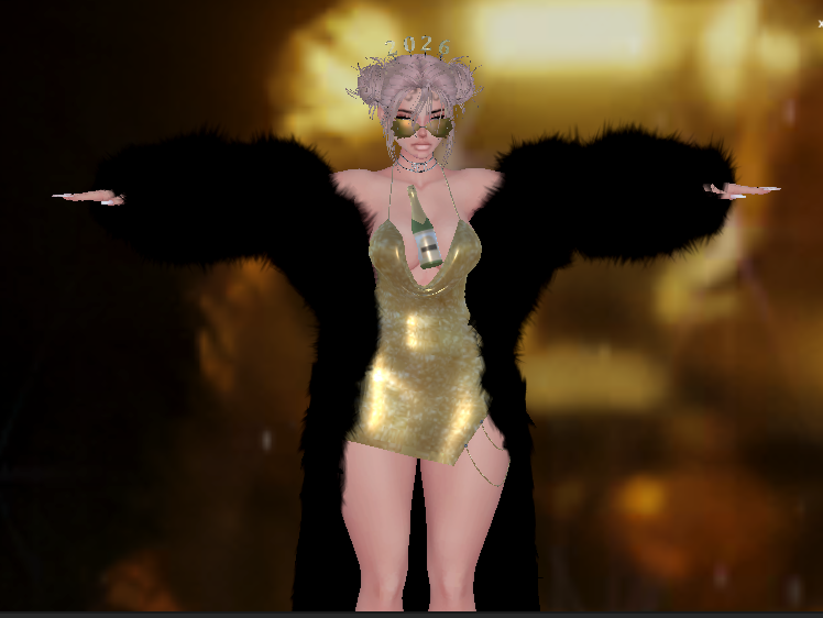 Fur Coat | Glasses | Dress | Champagne Bottle | Choker | Heeled Boots