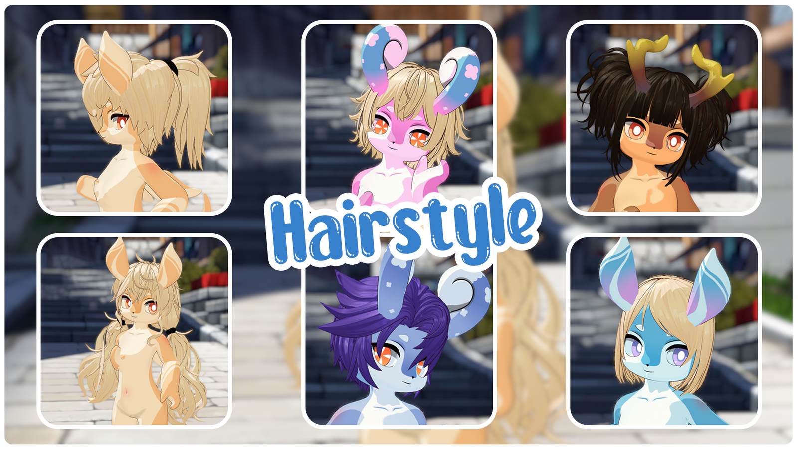 - Spike, Messy, TwinTails hair are made by Surcen, Other Hairs are made by myself