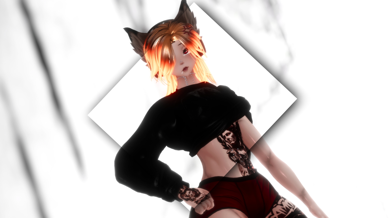 Head( made by Yura not for reuse) Body ( Edited by me not for reuse)~ Tattoo~ Doberman set ~ Cat Set ~ Lollypop ~ Hair 1 ~ Hair 2 ~ Heeled Boots ~ Boots ~ Chain Chokers ~ Rolled Sweater ~ Sweats ~ Butty Shorts ~ Hoodie~ Fit ~ Piercings
