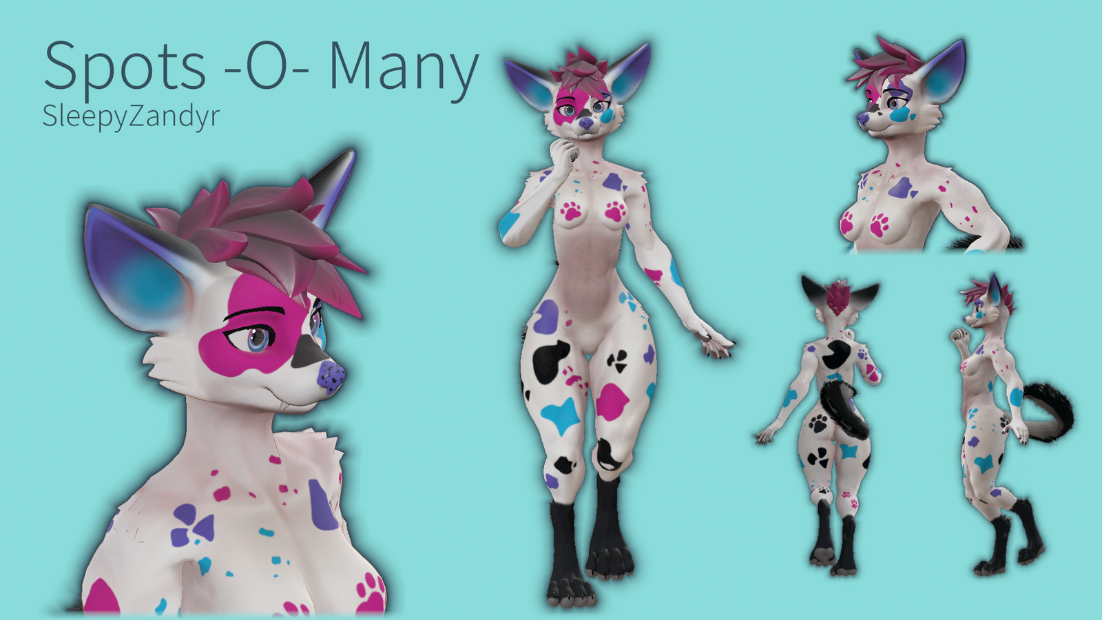 • Includes: Full body spotted skin texture + matching magenta-tipped hair texture.