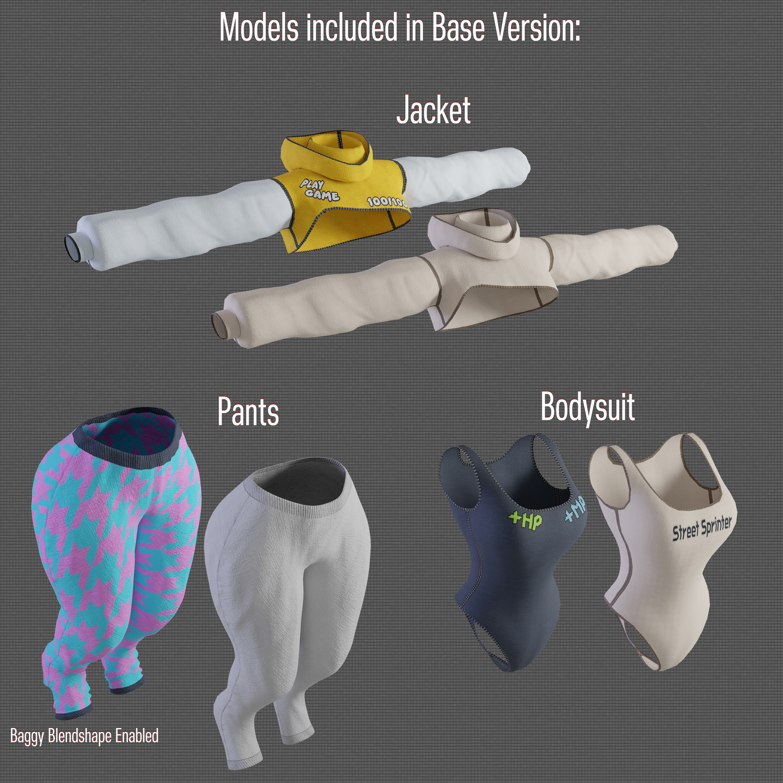 Objects included in asset: Bodysuit, Jacket, Pants.