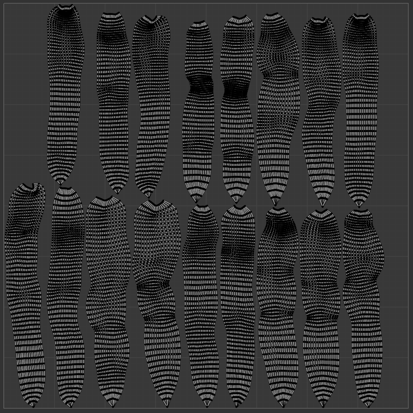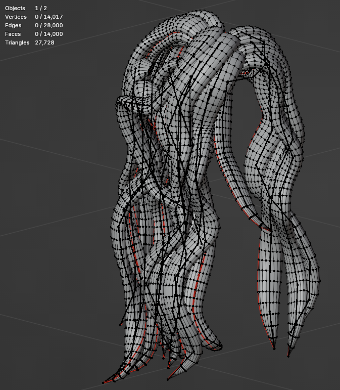 Hair hanging off side fluff clips and moves disproportionally with the fluff. By default slightly mitigated it by adding angle limitations.