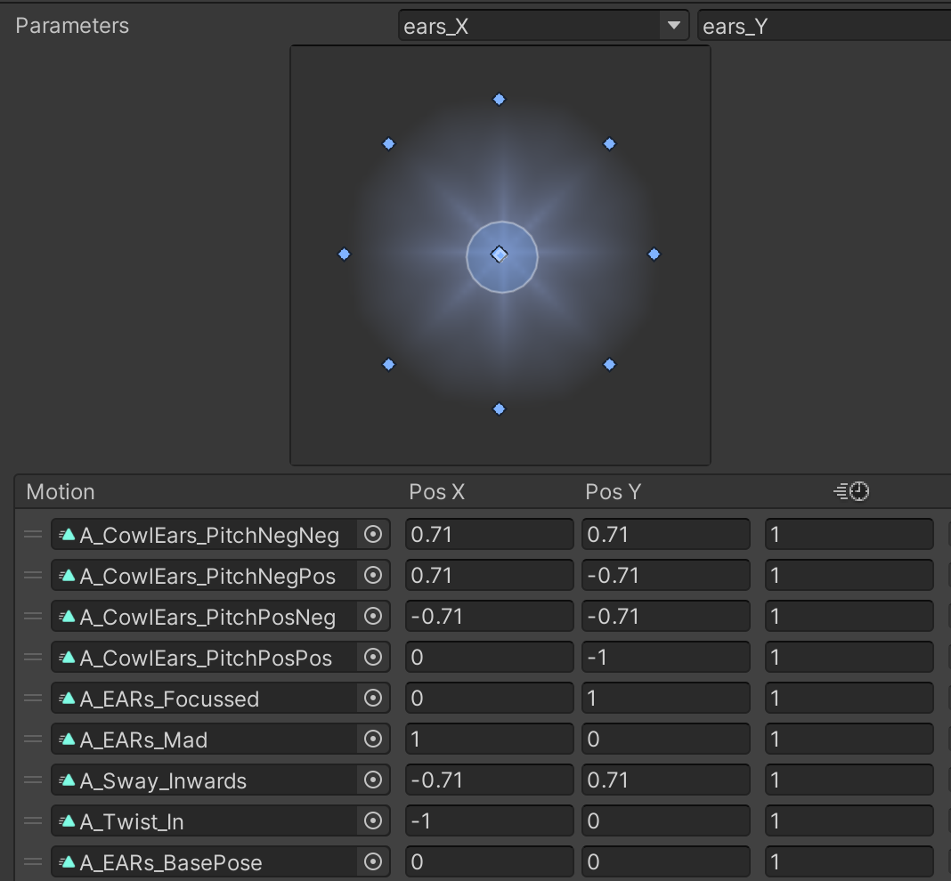 - Complex rig and constraints that allows for ear movement without distorting the ear vent blades.