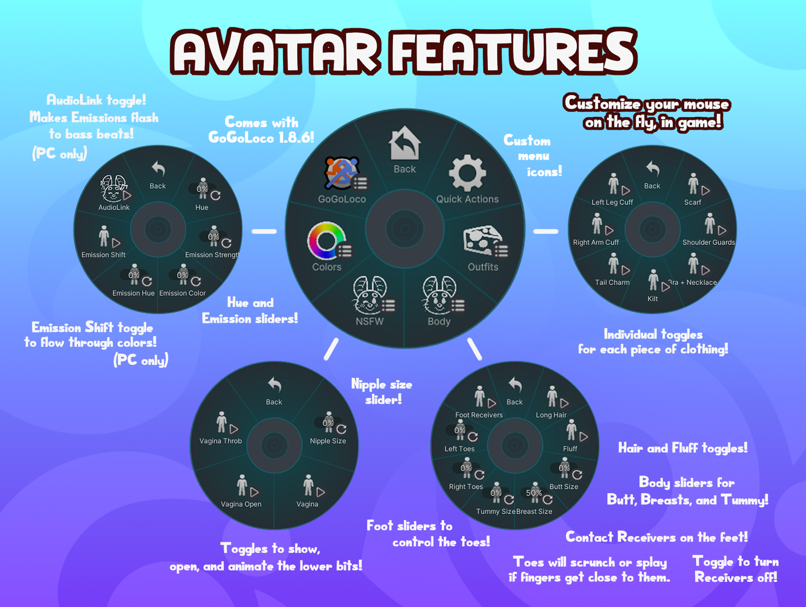 *I am not responsible or liable if you get banned from VRChat for violating its TOS while using this avatar.
