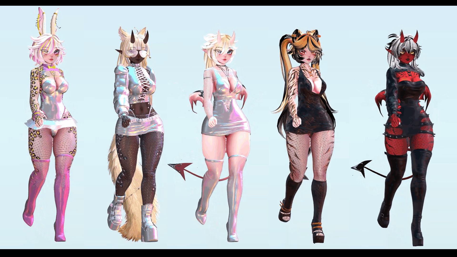 - 3 different sets of animal ears and tails, alongside demon horns, wings, and tail