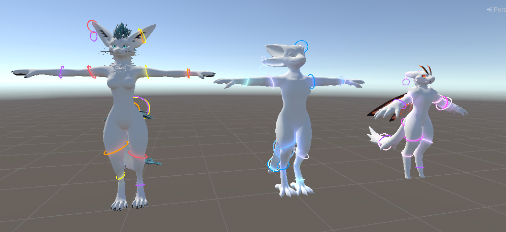 Textures zip file contains separated masks for the glowsticks, a GIMP xcf file for making quick recolors, and the albedo textures I threw together for each avatar. They're all interchangeable, just make sure you change the emissive colors on the body material to match.