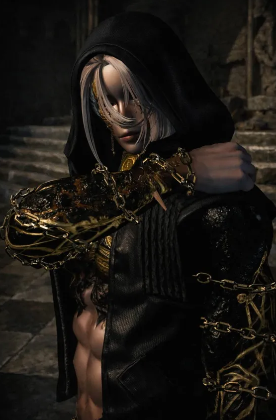 Clothing: Hood: Ruski / Skirt: Sahara / Sweats: evan3d / Thong - Thong Cover - Necklace - Earrings - Waist Chains - Wristbands - Thigh Chains: Lovecusty / Crown & Veil: KC / Jacket: KC / Pants: KC / Shoes: Bruce / Tank: Bruce / Armor: KC