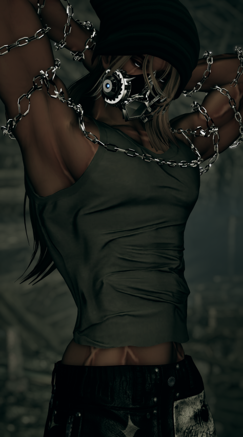 Accessories: Face Chains: Winxie / Beanie: Gwennovere / Gas Mask & Chain Necklace: WARLORDS / Chains: Yes Please Ty / Jewels: COMMISSIONED BY: Compelled Ink - DO NOT REUSE! / Veil Chains: YuaYume
