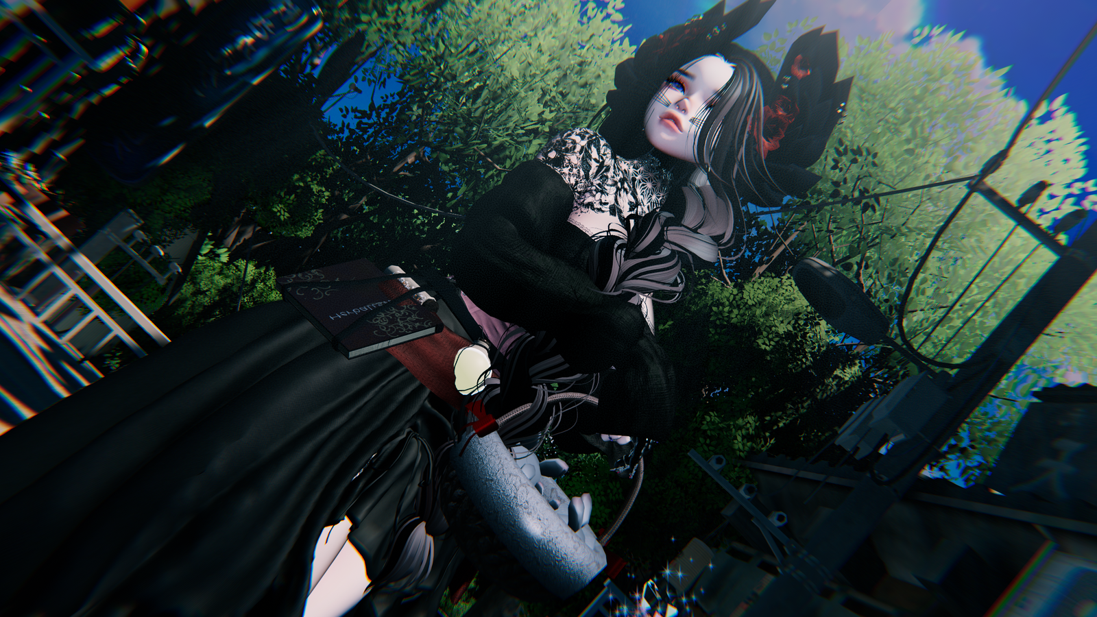Accessories: Ears: FormulaRats / Hat: bvbybvnshee / Headband: GM / Whiskers: YukiOokami / Book Belt + Necklaces 2: PixelTopia / Choker: Electric Cherry / Nails: Sukiii / Rings: Virtual Spice
