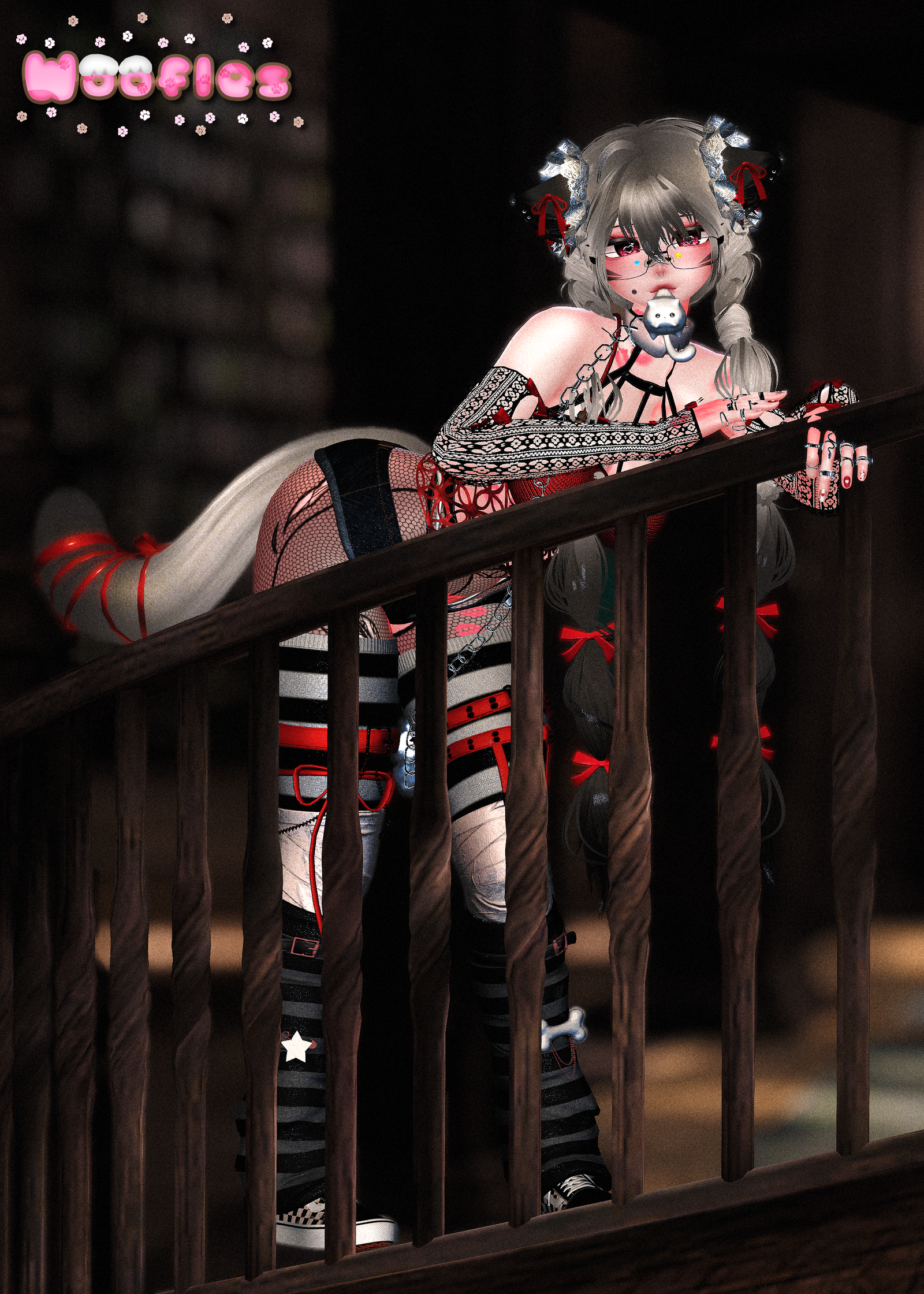 Due to quest limitations a few items like : fishnet, tattoos, sleeves, long /short hair, rings, mouth kitty, teddy bear, leash and hoodie was removed!