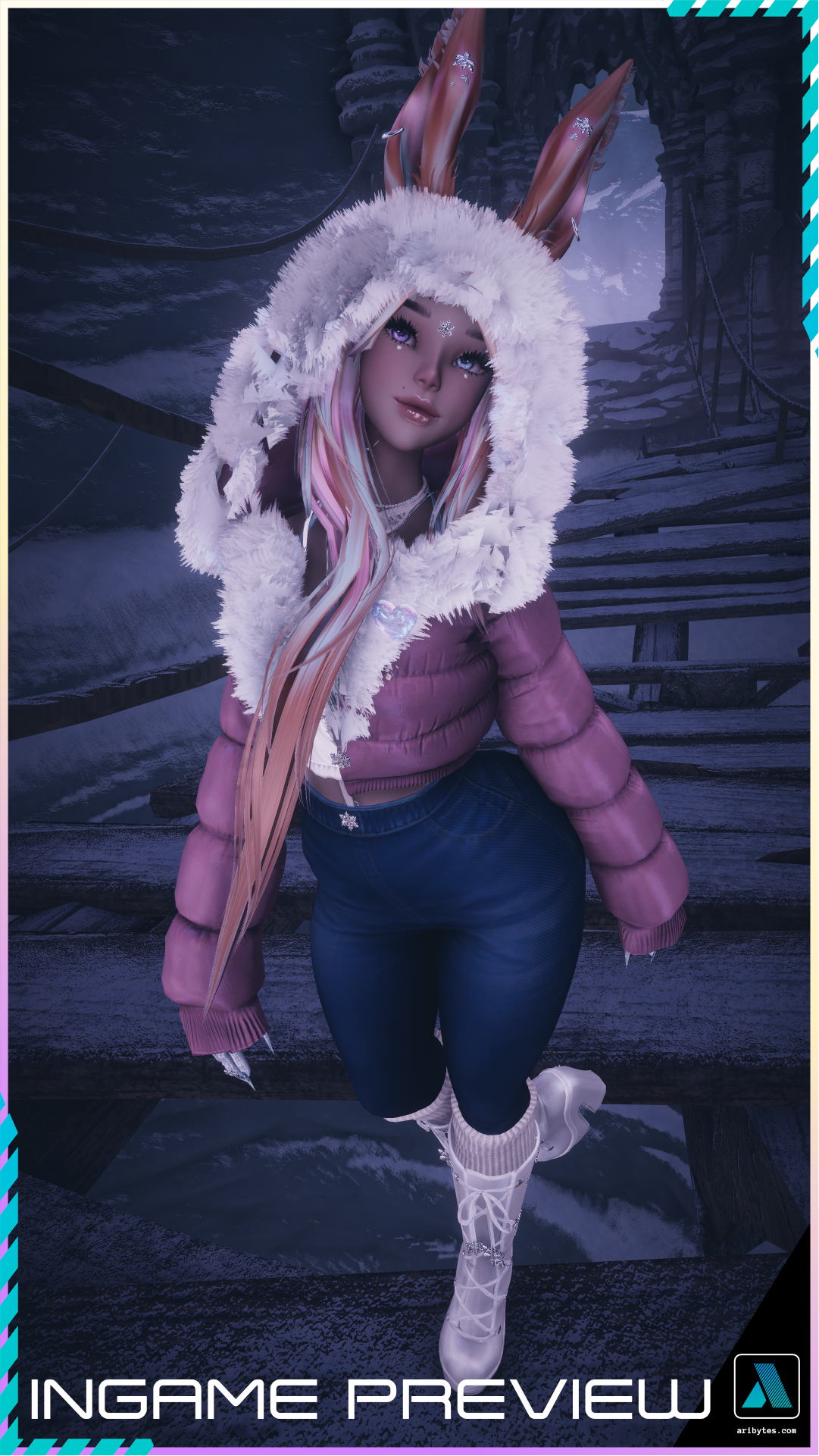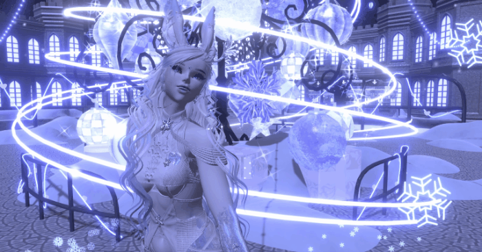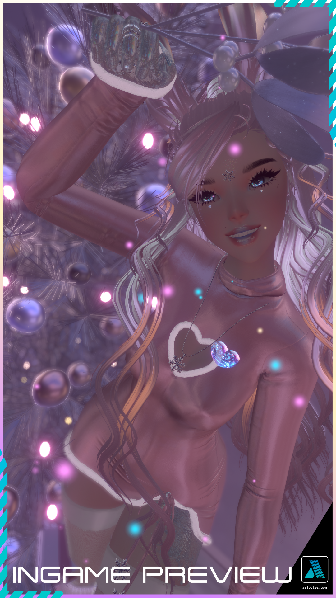 - floating heart, snowflake particles, bunny follower/charm/plush, mistletoe