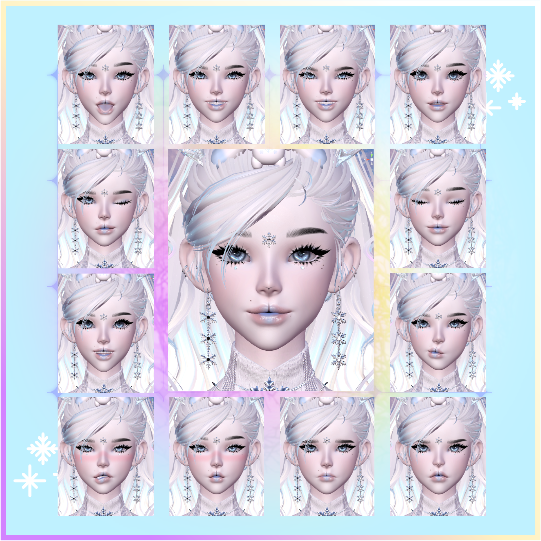 - extras: head pat, nose boop, heart, follower, plushie, charm, mistletoe, snowflake particles, expression lock and mmd compatibility