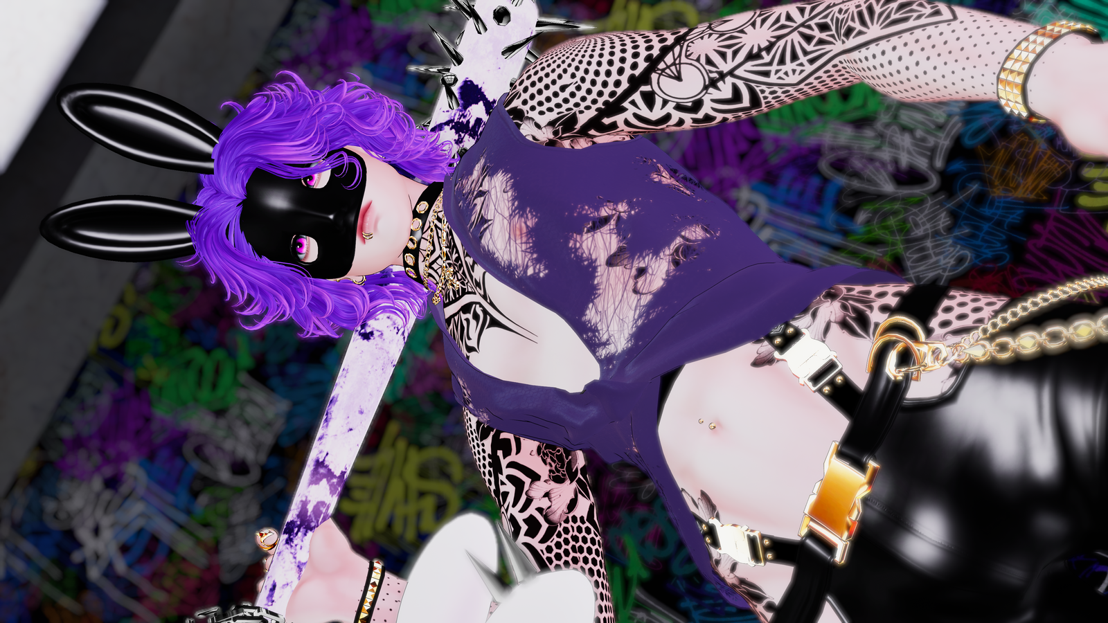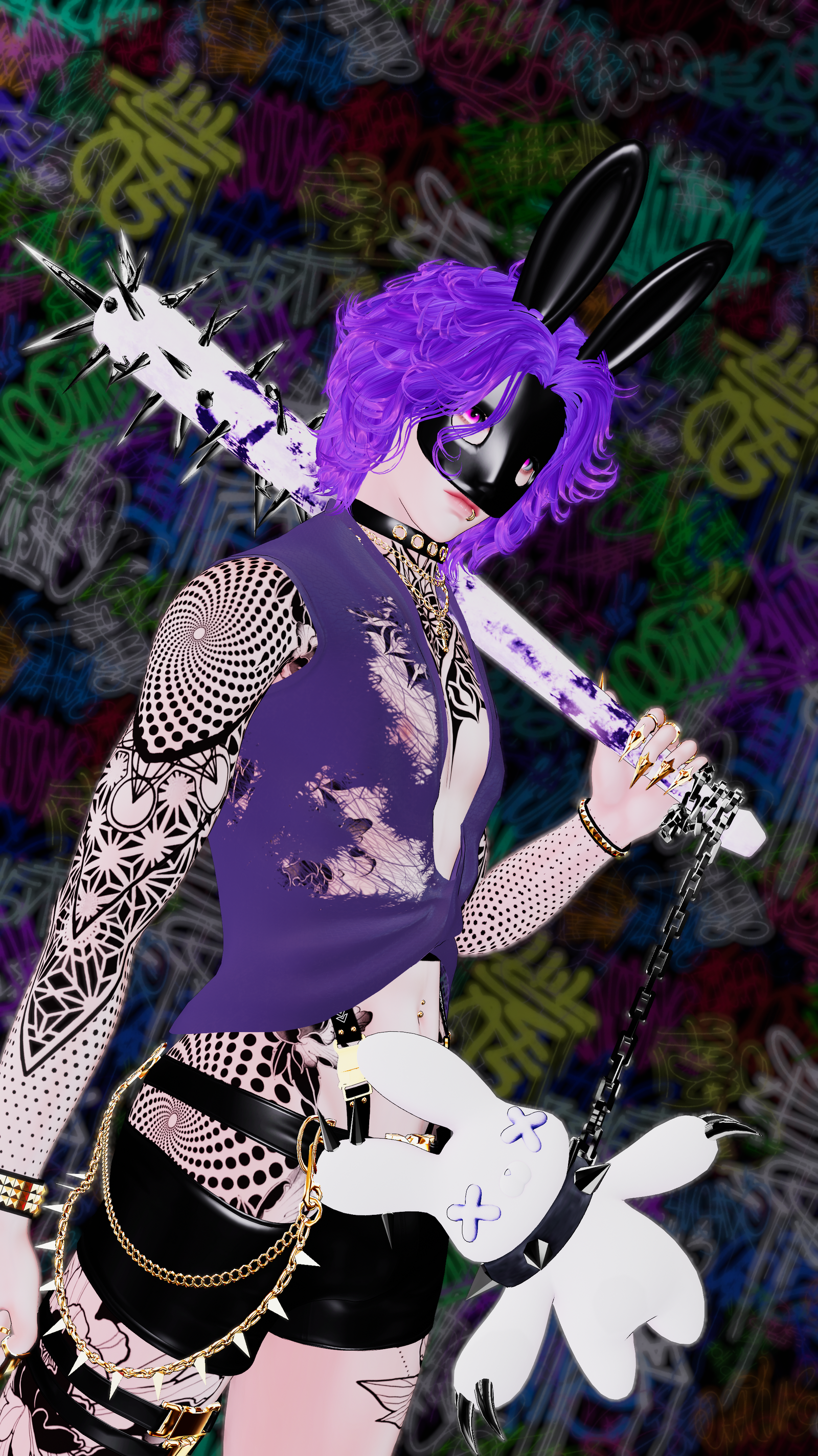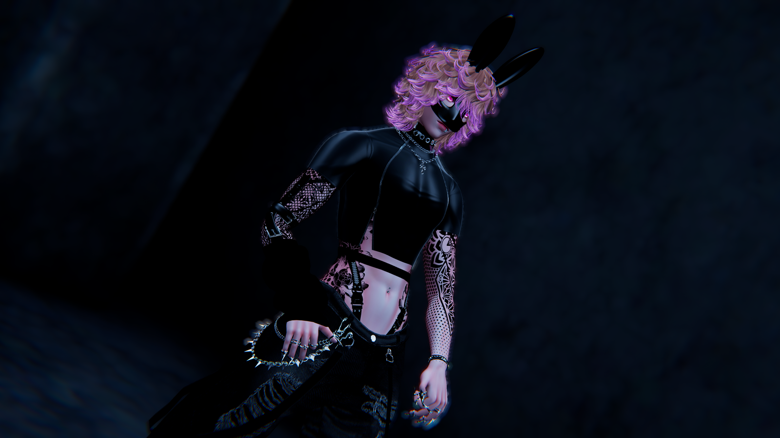 - accessories: necklace, choker, bracelets, bunny mask, earrings, sleeves, rings, metal claws, piercings