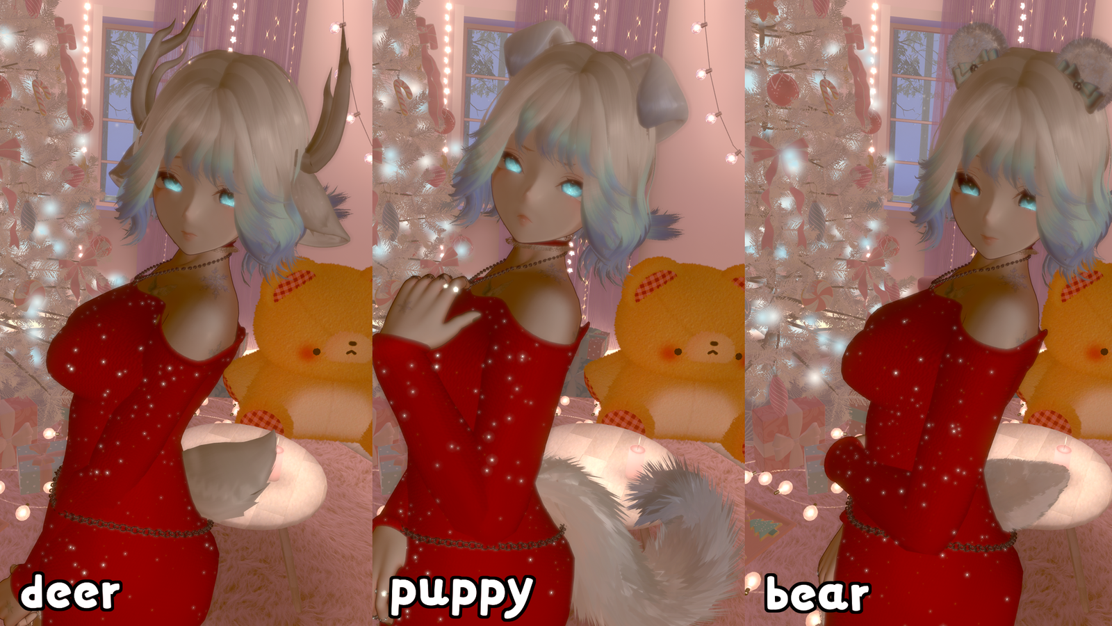 ✧ Species: Reindeer, puppy, bear, human ears, horns, mat swap, hue shift, saturation, brightness