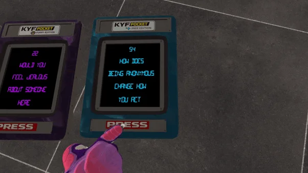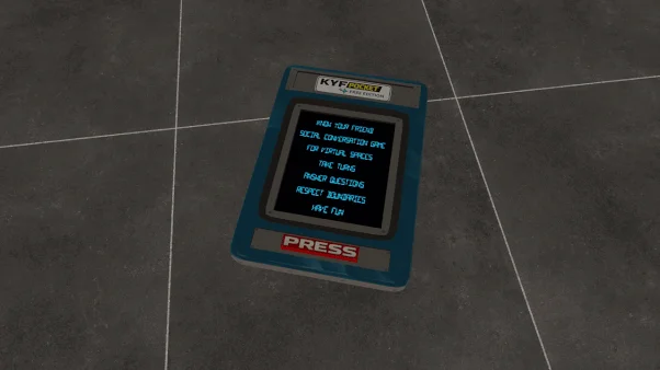 KYF Pocket is a small social question device for VRChat avatars.