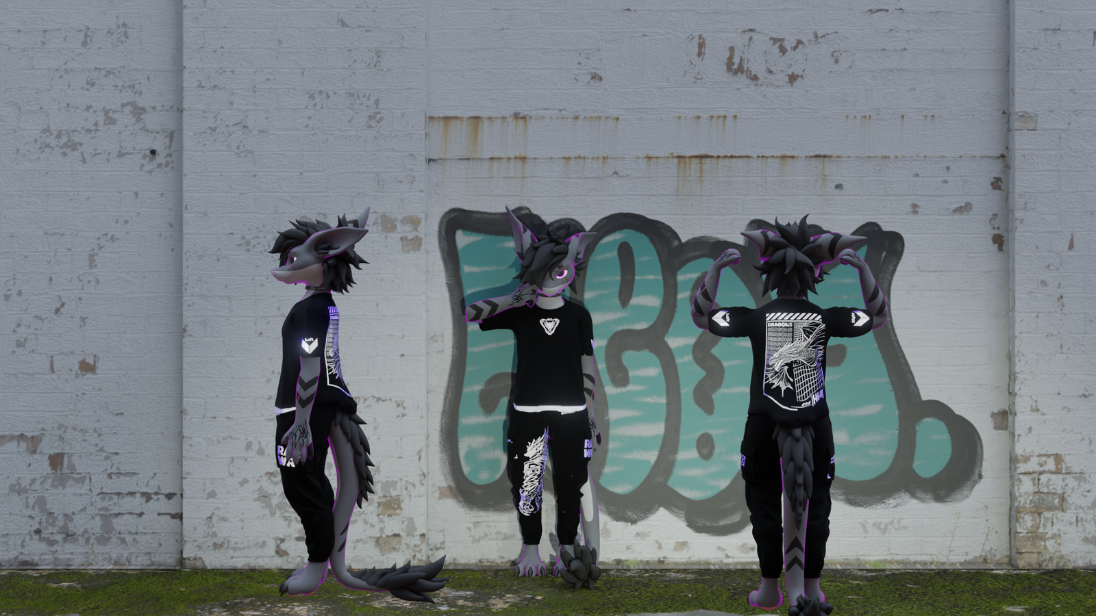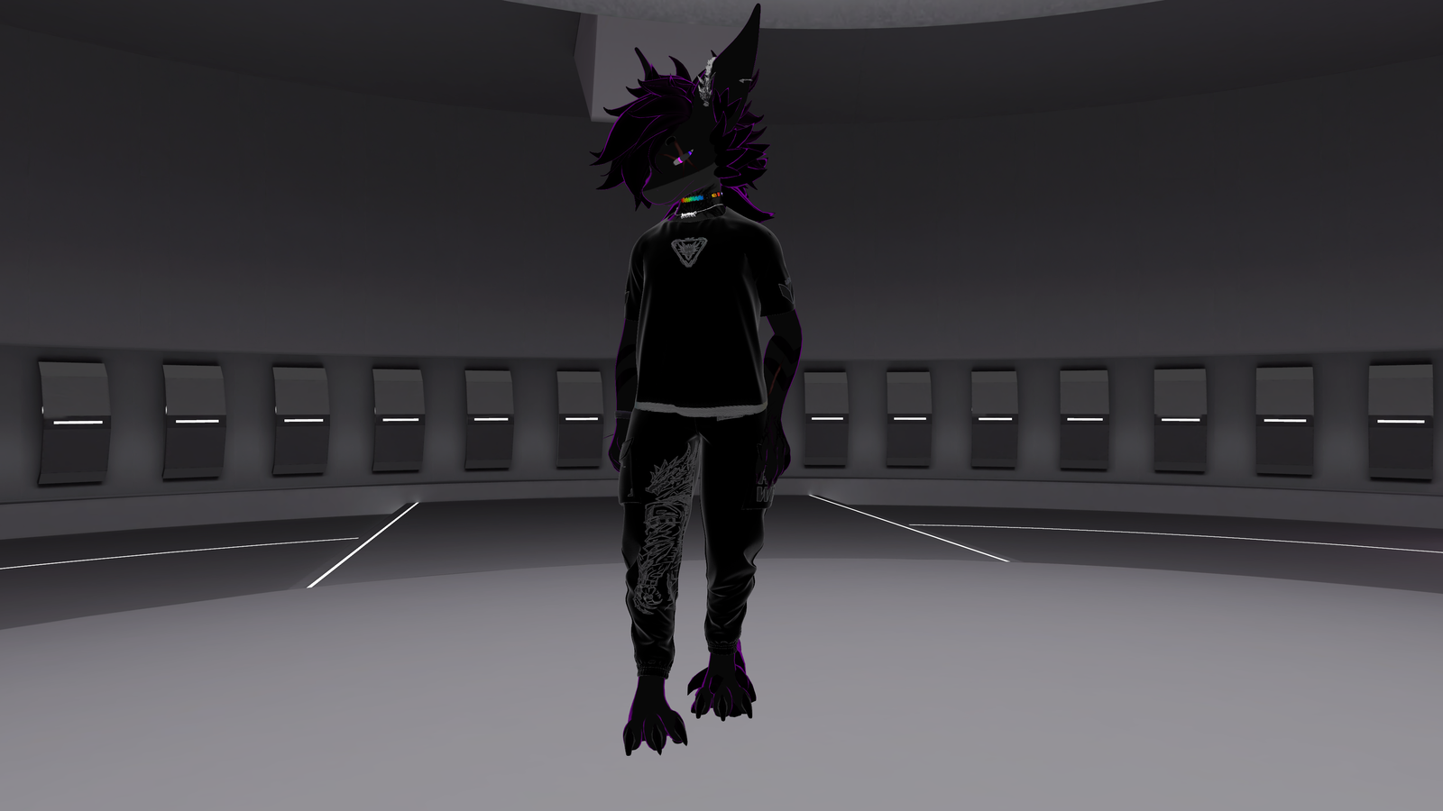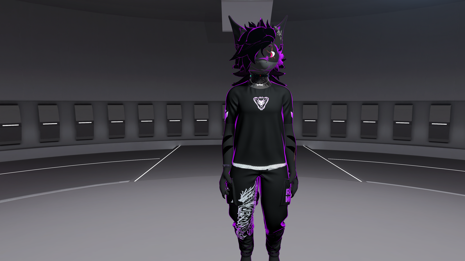 Dark streetwear outfit featuring a stylized dragon graphic with reflective aesthetic elements. Designed for a clean cyber / techwear look while remaining simple and easy to integrate into your VRChat avatar setup.