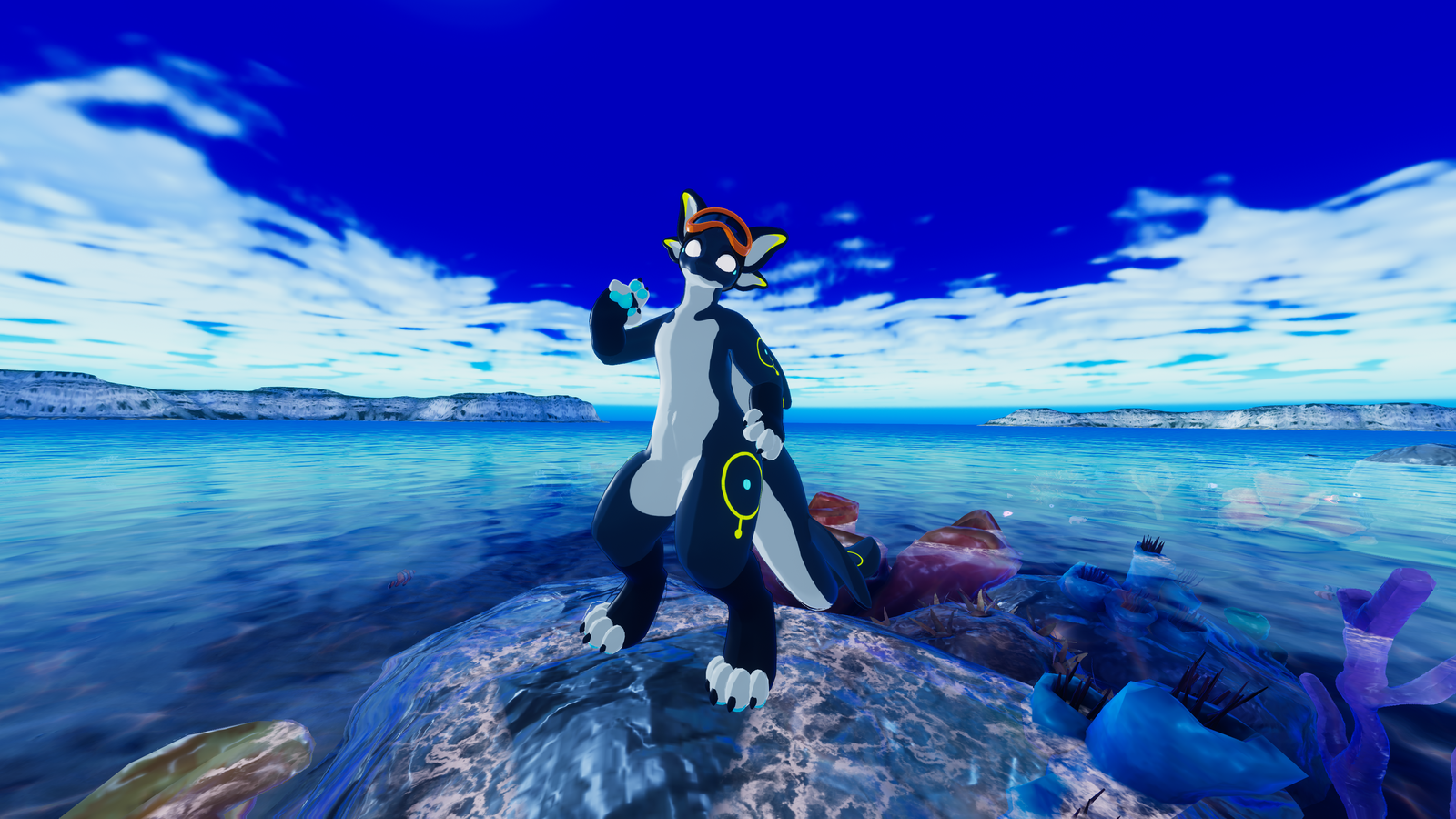 This VRChat ready avatar features the design of a Maelstrorca! Maelstrorcas are an original species created by me :D