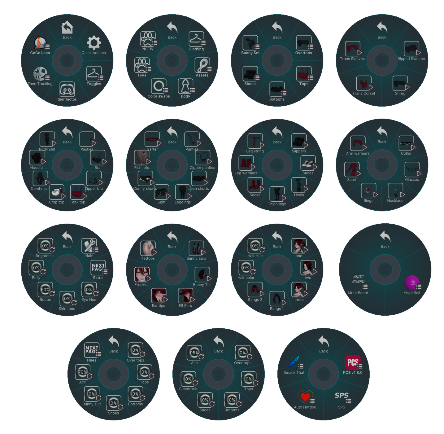 Assets: Arm warmers, scarf, choker, necklaces, glasses, rings, bunny ears and tail
