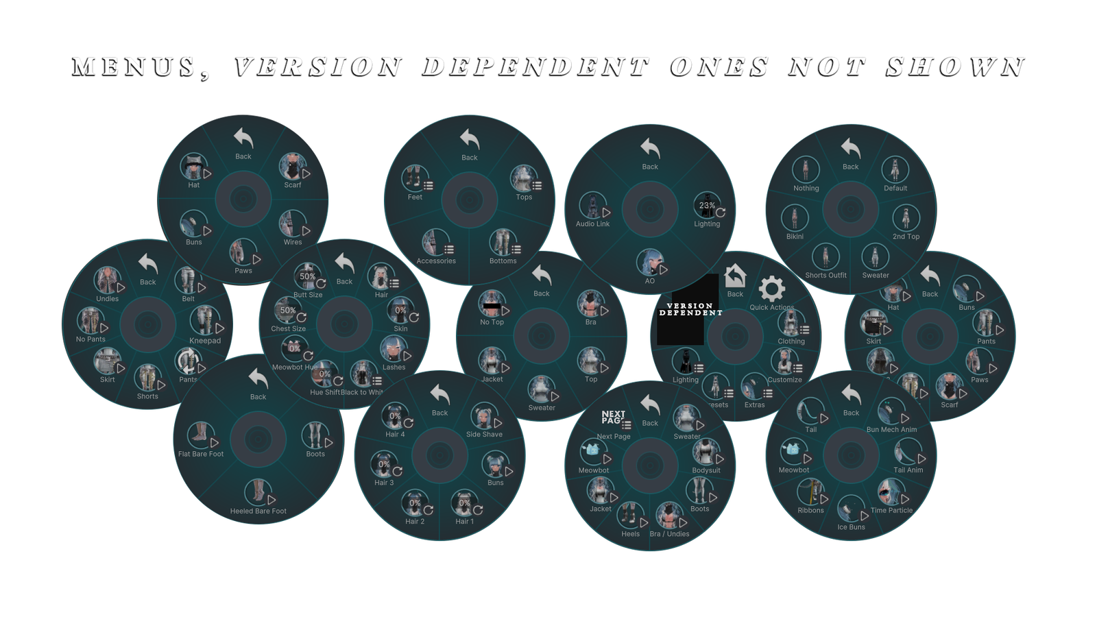 - body settings: chest & butt size radials, skin tone radial & inhuman blue / frosted version.