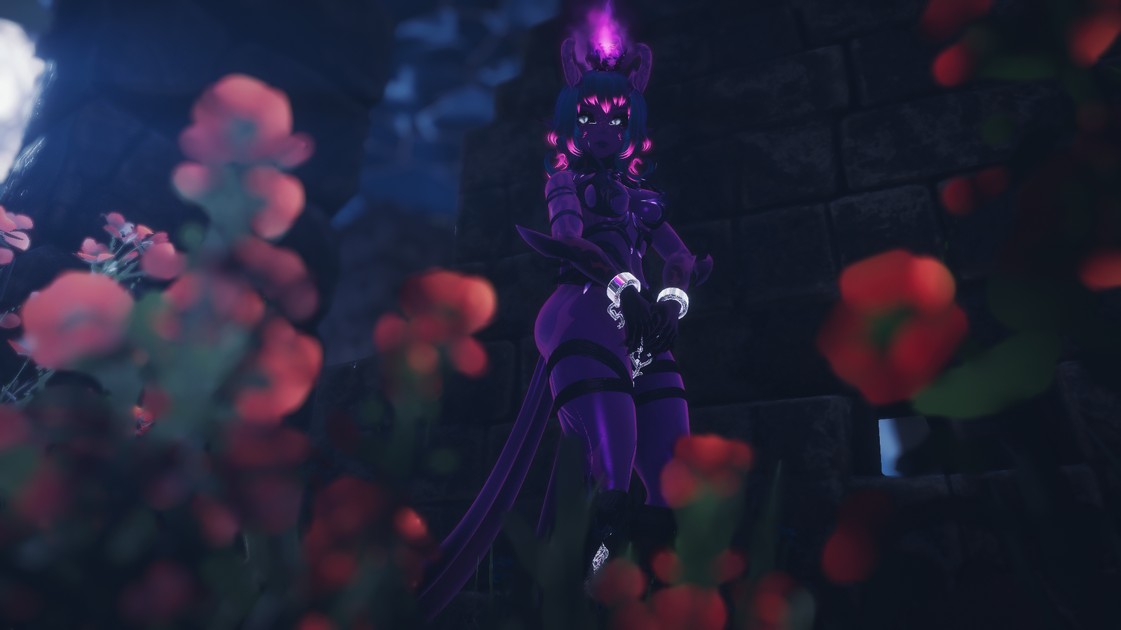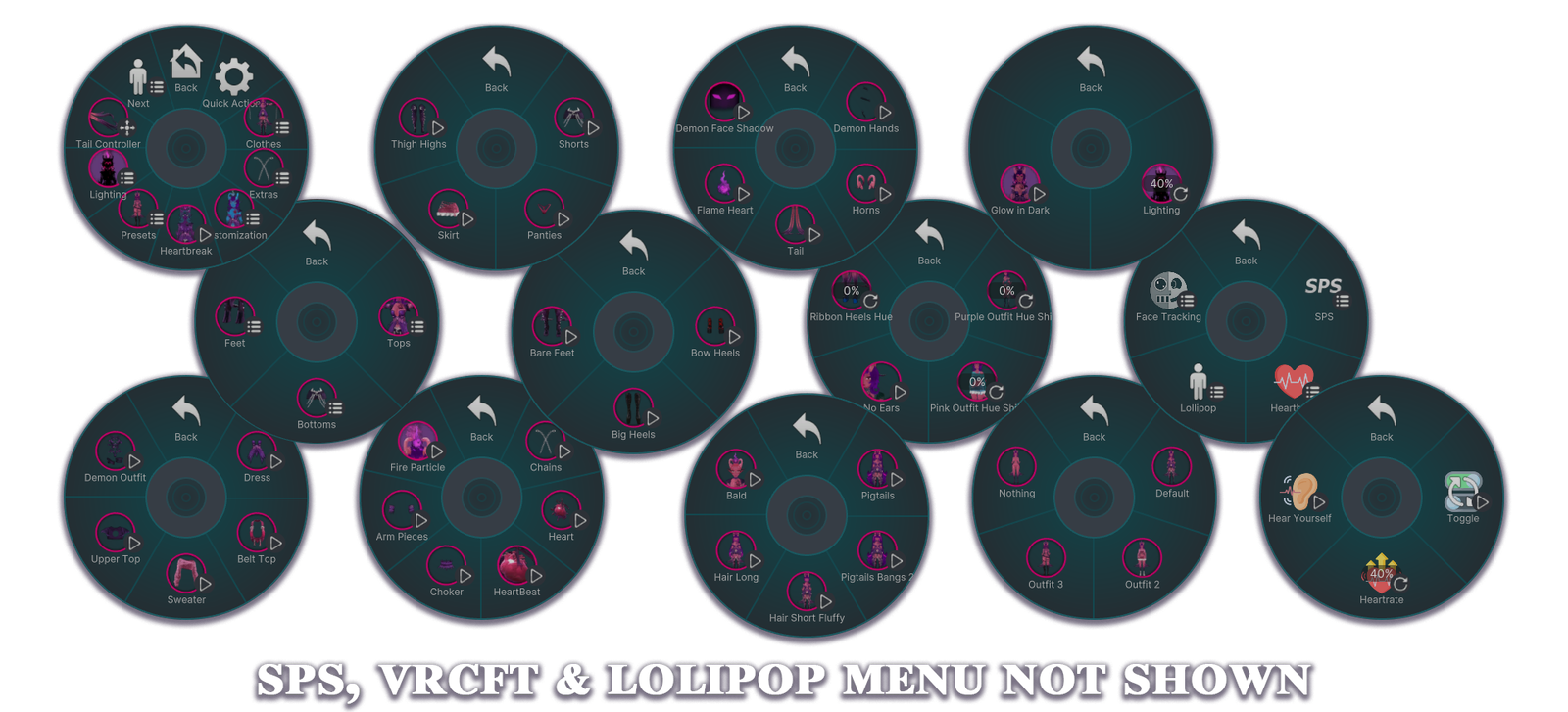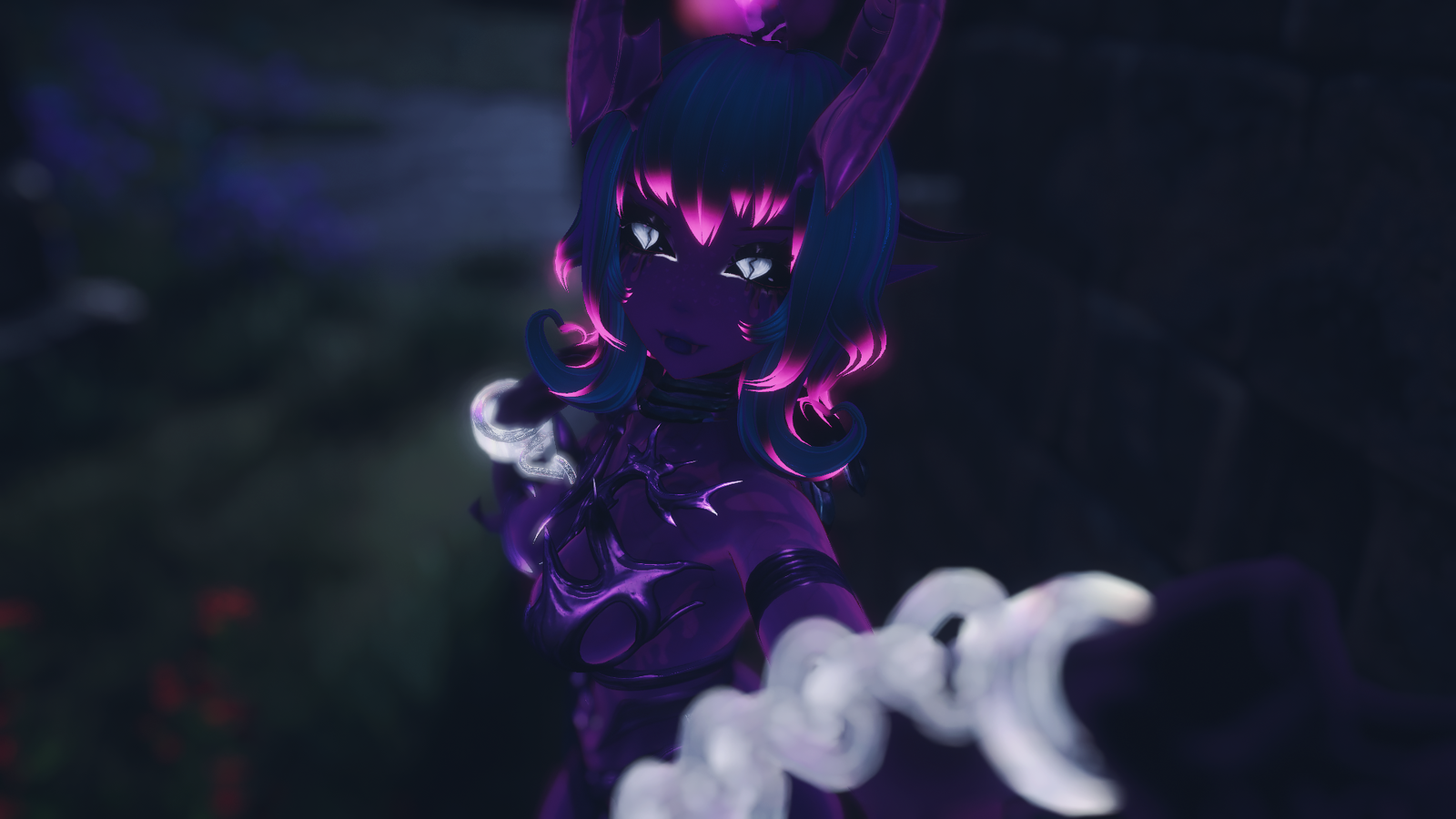 - demonic toggleable traits: horns, tails, flames ( particle separate toggle ), transparent hands & face shadow with glitchy eyes.
