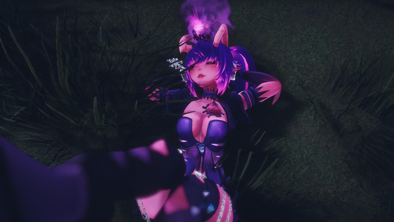other textures, hairs, dress, shorts, panties, top, sweater, knee high boots, hooves, tails, horns, chains, heart, etc. made by me, illumevr.