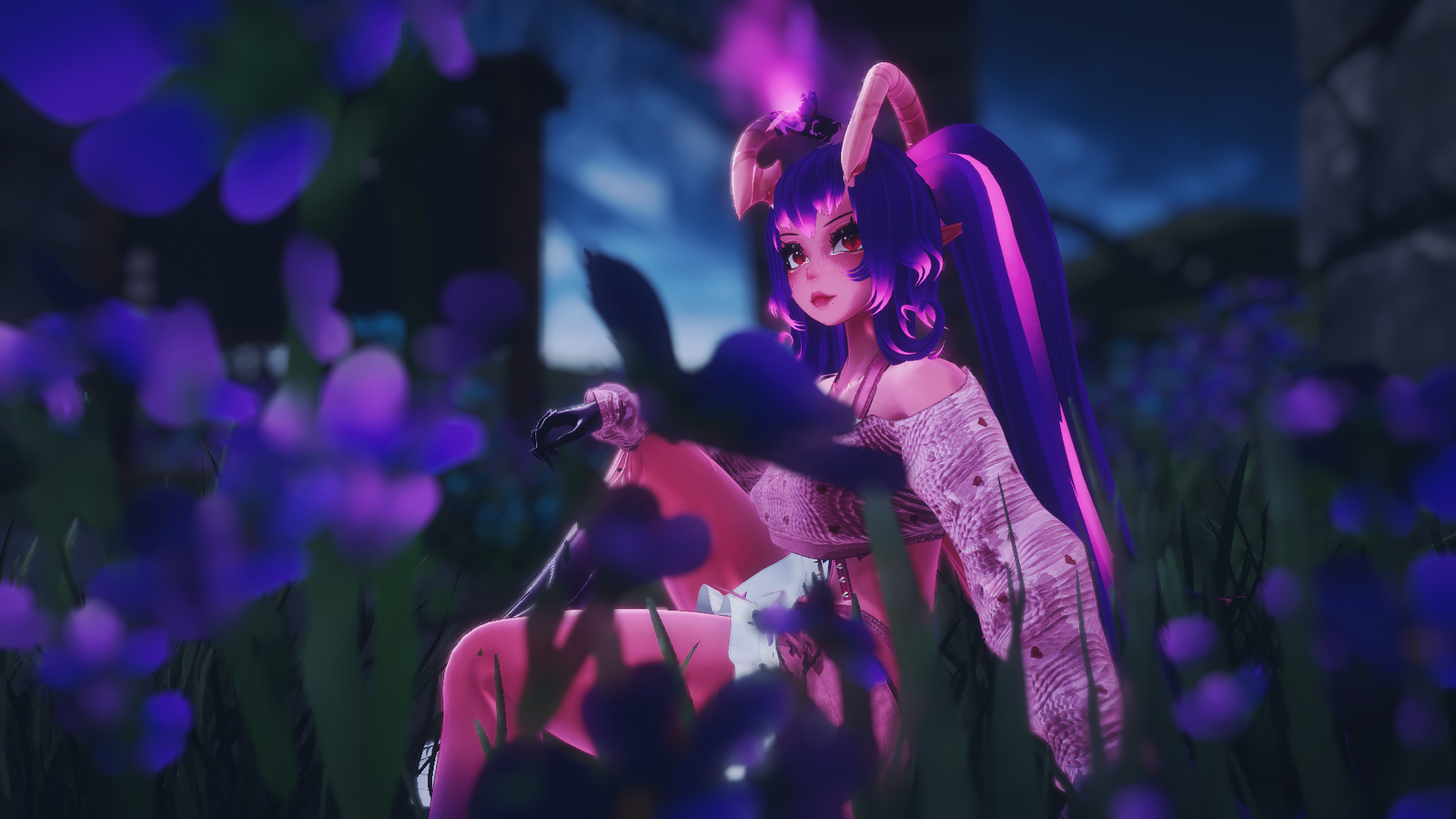 - body hue shift, hair hue shift, purple outfit hue shift, ribbon heels hue & pink outfit hue shift.