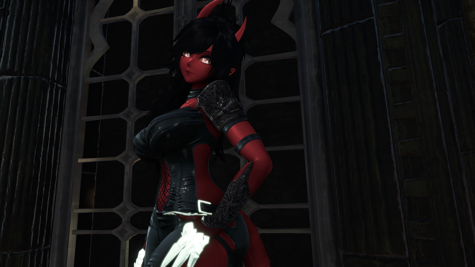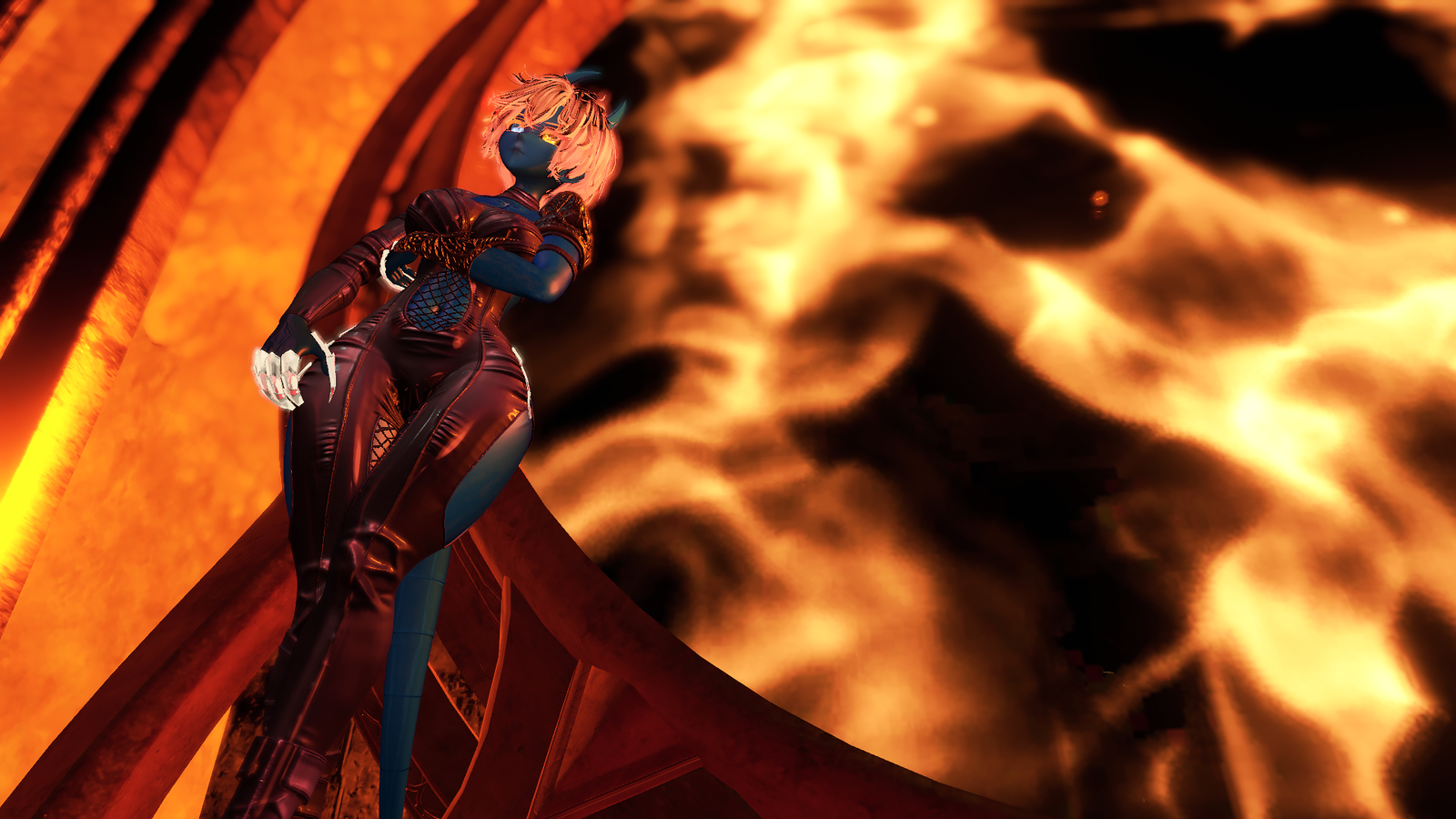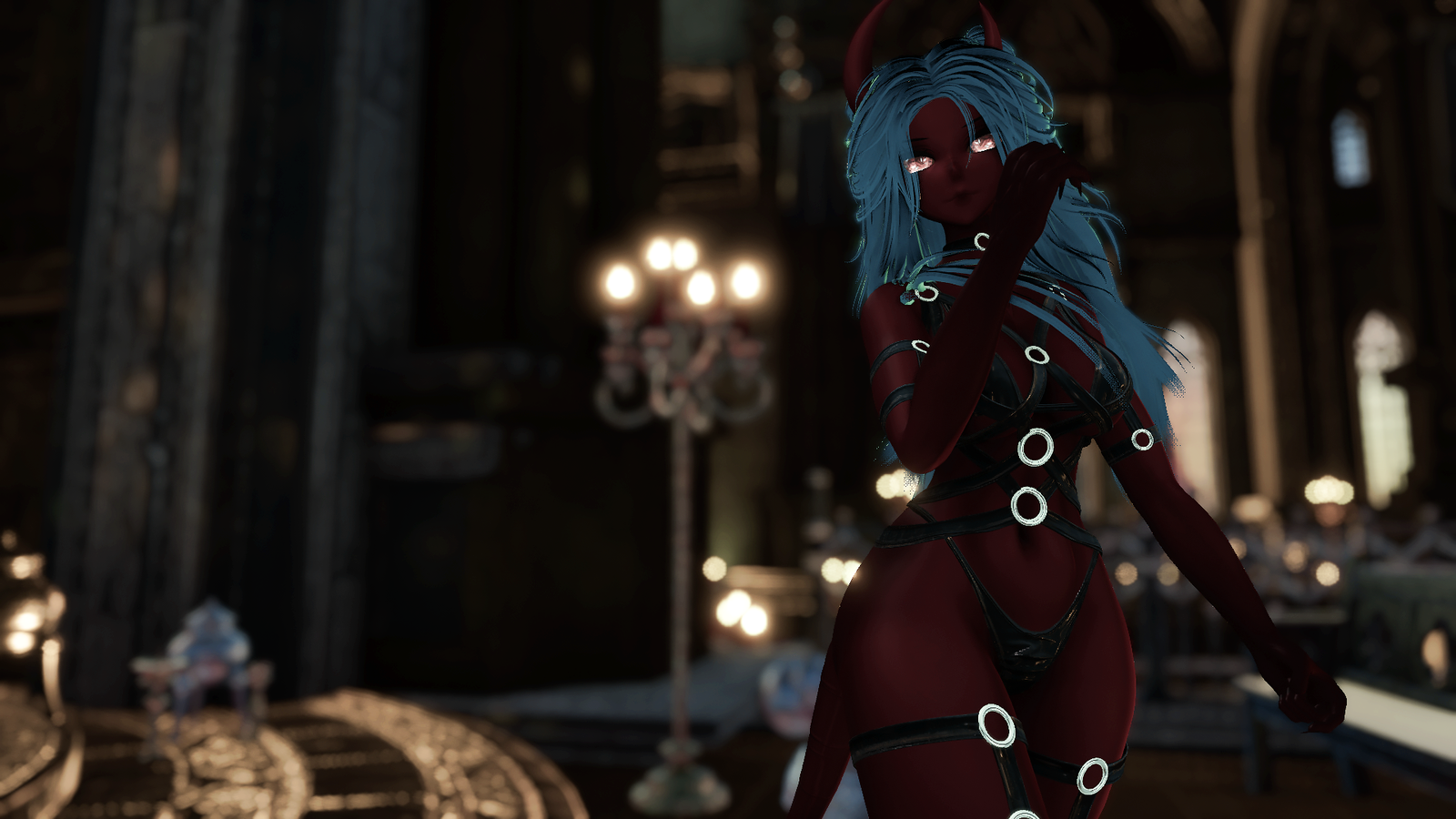 ponytail hair, throat texture, eye texture, demon textures, human face texture, horns, tail, jacket, tanktop, shorts, bodysuit, heels, boots, heeled boots, socks, skirt, bra, bikini, harness, jacket, choker & textures made by me, illumevr.