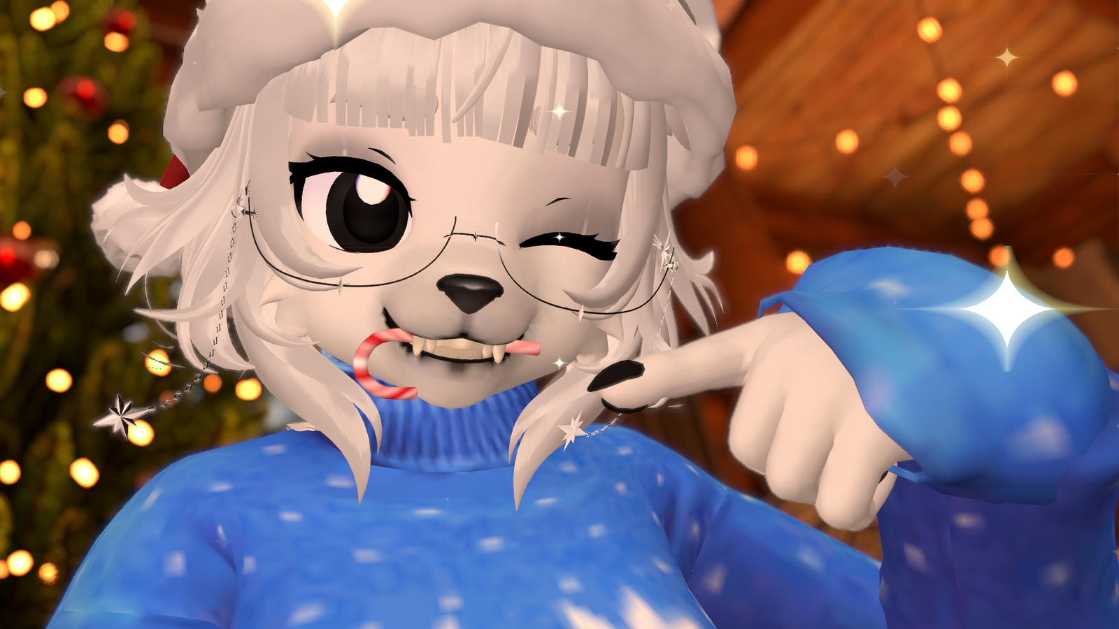 jinxxy.com tags: avatar, fem, female, alt, polar bear, furry, christmas, holiday, winter, bear