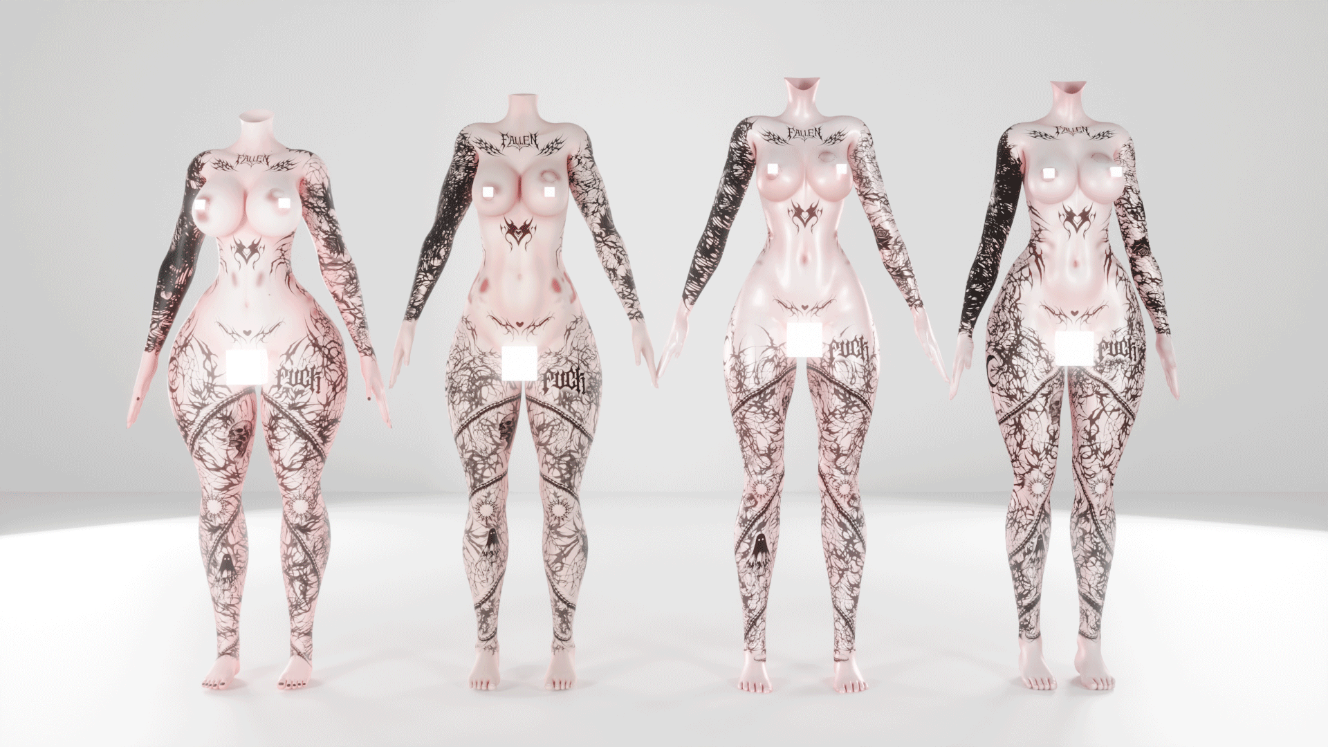 This collection focuses on black & white tattoo art combined with night-time marks — bruises, bites, and raw details — giving your avatar a deeper, atmospheric story.