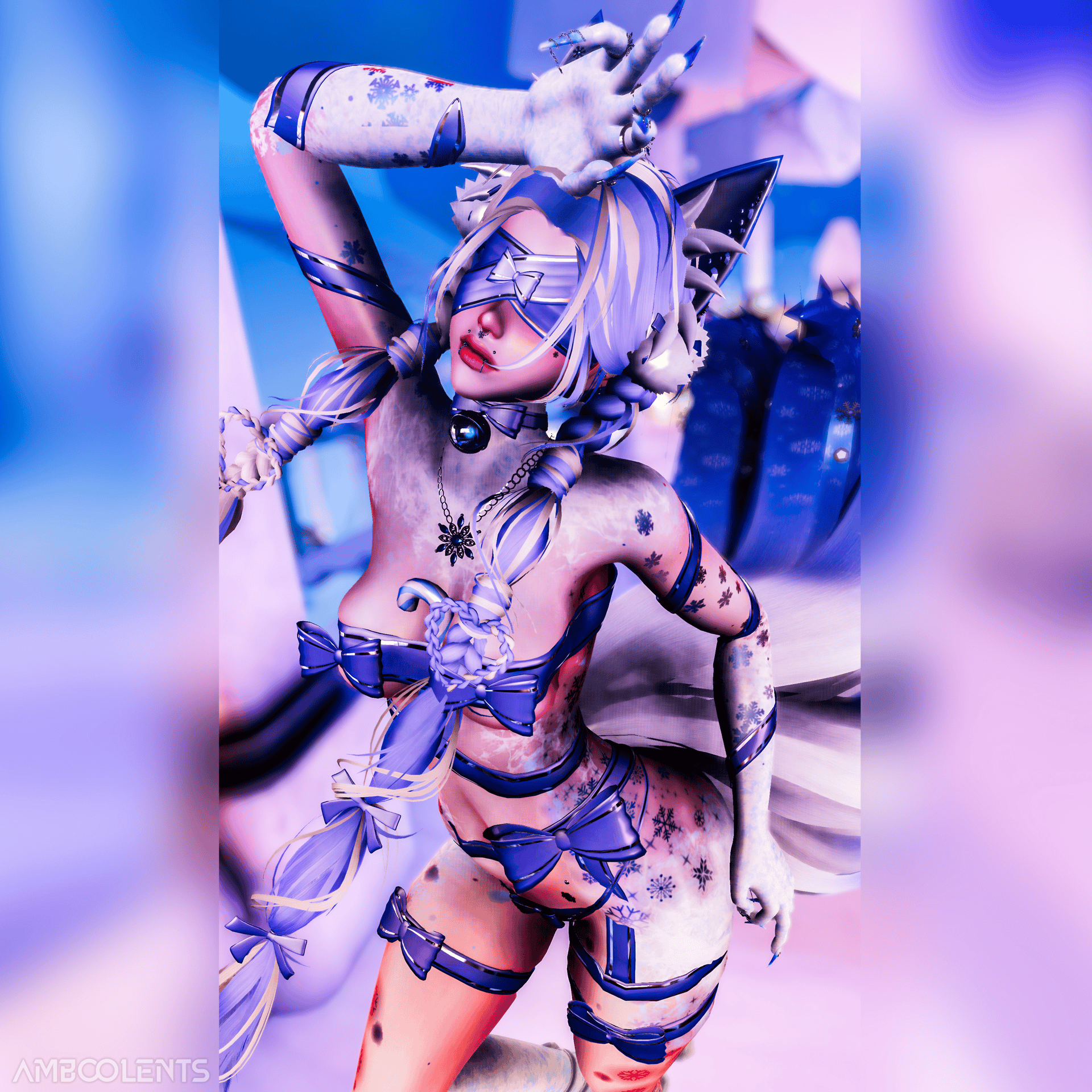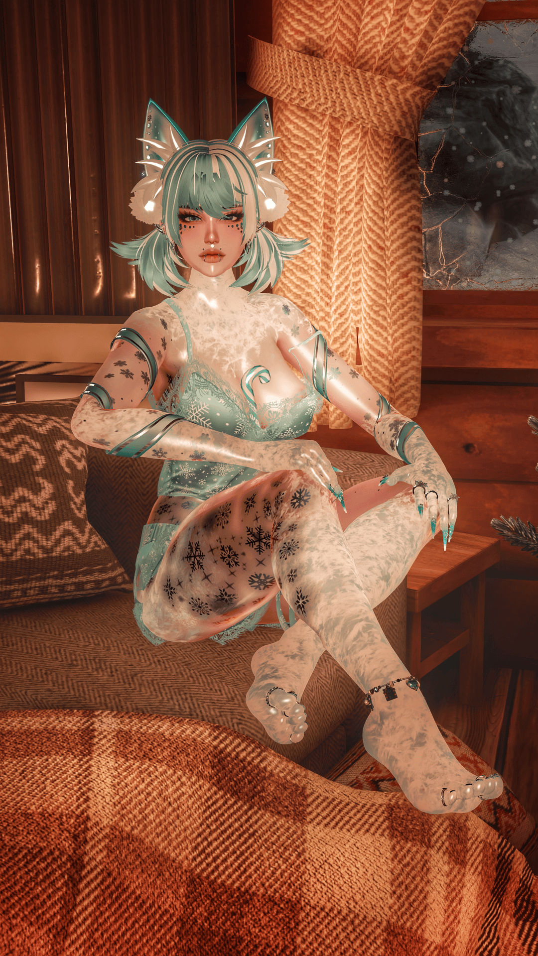 Accessories (27) Ribbon Mask, Face Gems, Feather Headpiece, Earmuffs, Glasses, Face Piercings, Ribbon Choker, Necklace, Booba Candycane, Back Candycane, Arm Ribbons, Ms Gloves, Boa, Booba Feathers, Nipple piercings, Feather Fans, Ms Corset, Body Piercings, Back Feathers, Waist Garter, Ribbon Garter, Gingerbread Garter, Hair Dryer, Body Ribbons, Leg Warmers, Anklet, Rings.