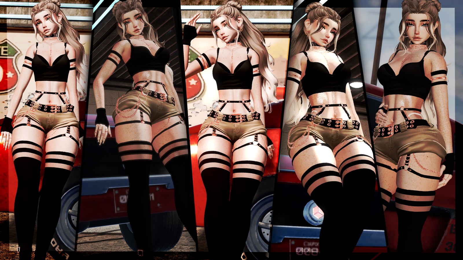 Accessories: Arm Rings, Chest Chain, Chokers, Gloves, LEg Harness, Rings, Cat, and Face Piercings