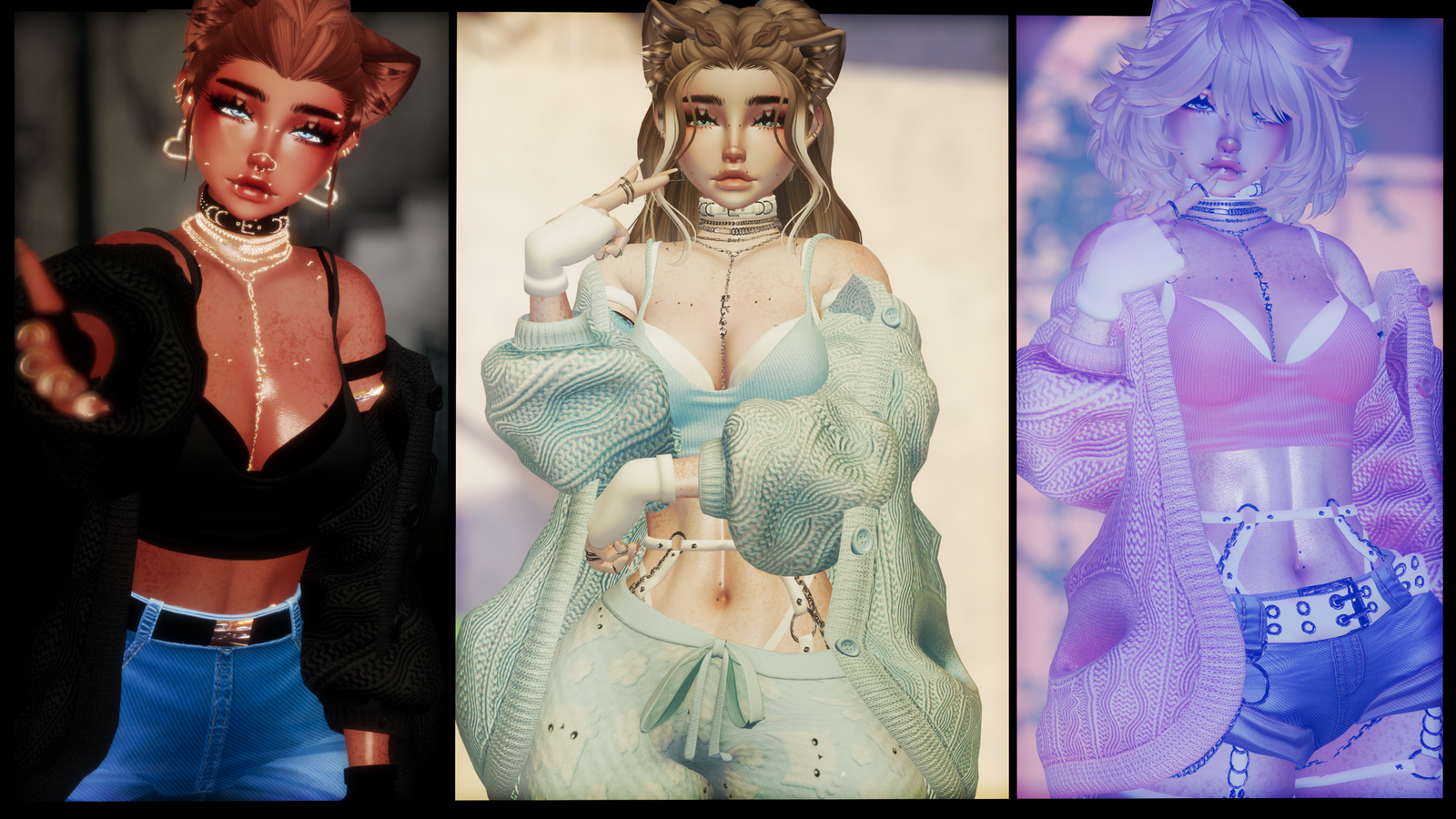 Customization: Lighting, White->Black, Metals, Eye Hue, Skin, and Clothing (Cardigan, Hoodie, Tank, Pants n Shorts, Pjs, and Hueshift)