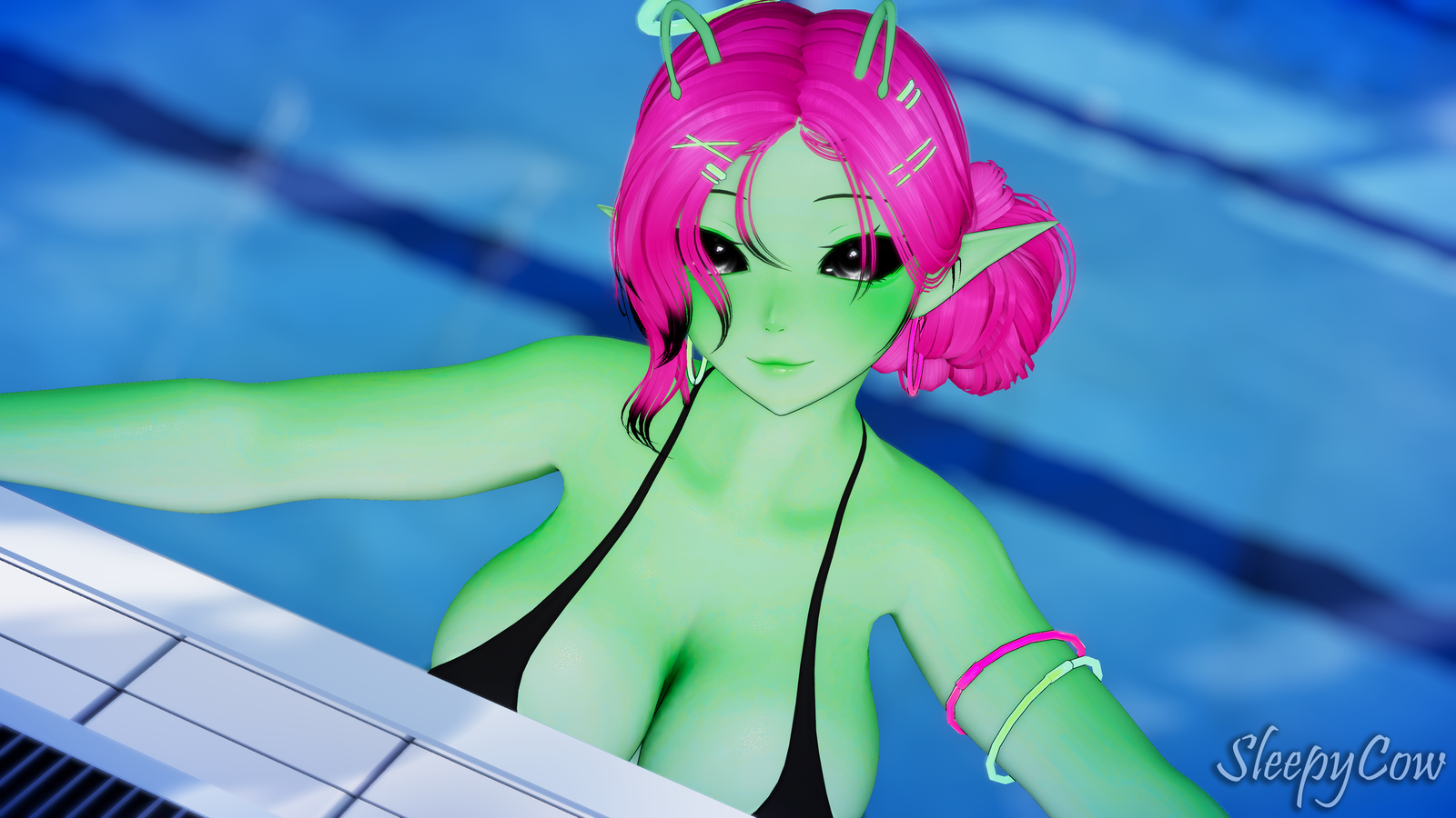 Enjoy this silly and greeeenn Alien! With 2 head versions for those who like a more realistic face and for those who like the anime style! I spent a lot of time on this avatar so please enjoy her!