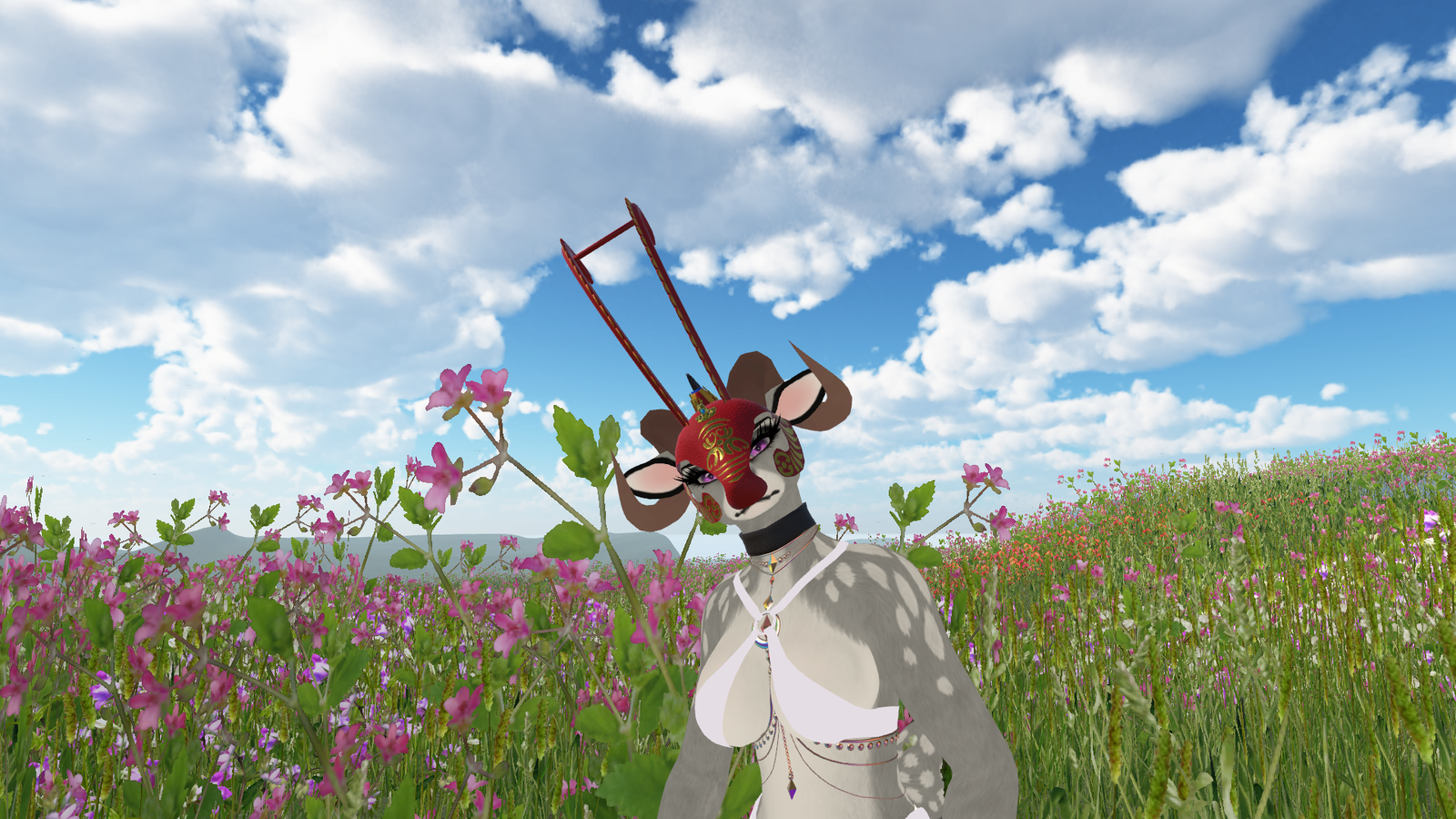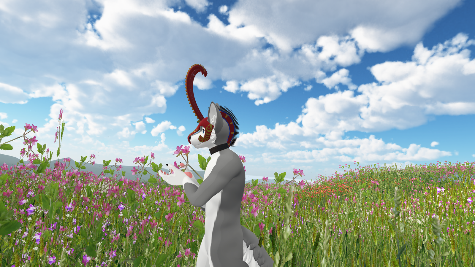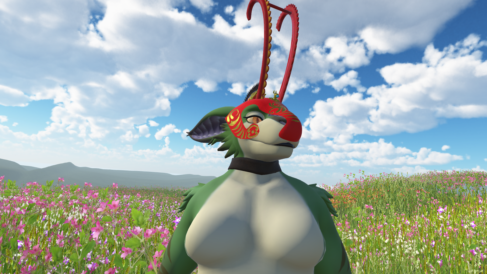 - Blendshapes, in unity, to hide each part of the mask (crest/horns/neckstrap/mask)