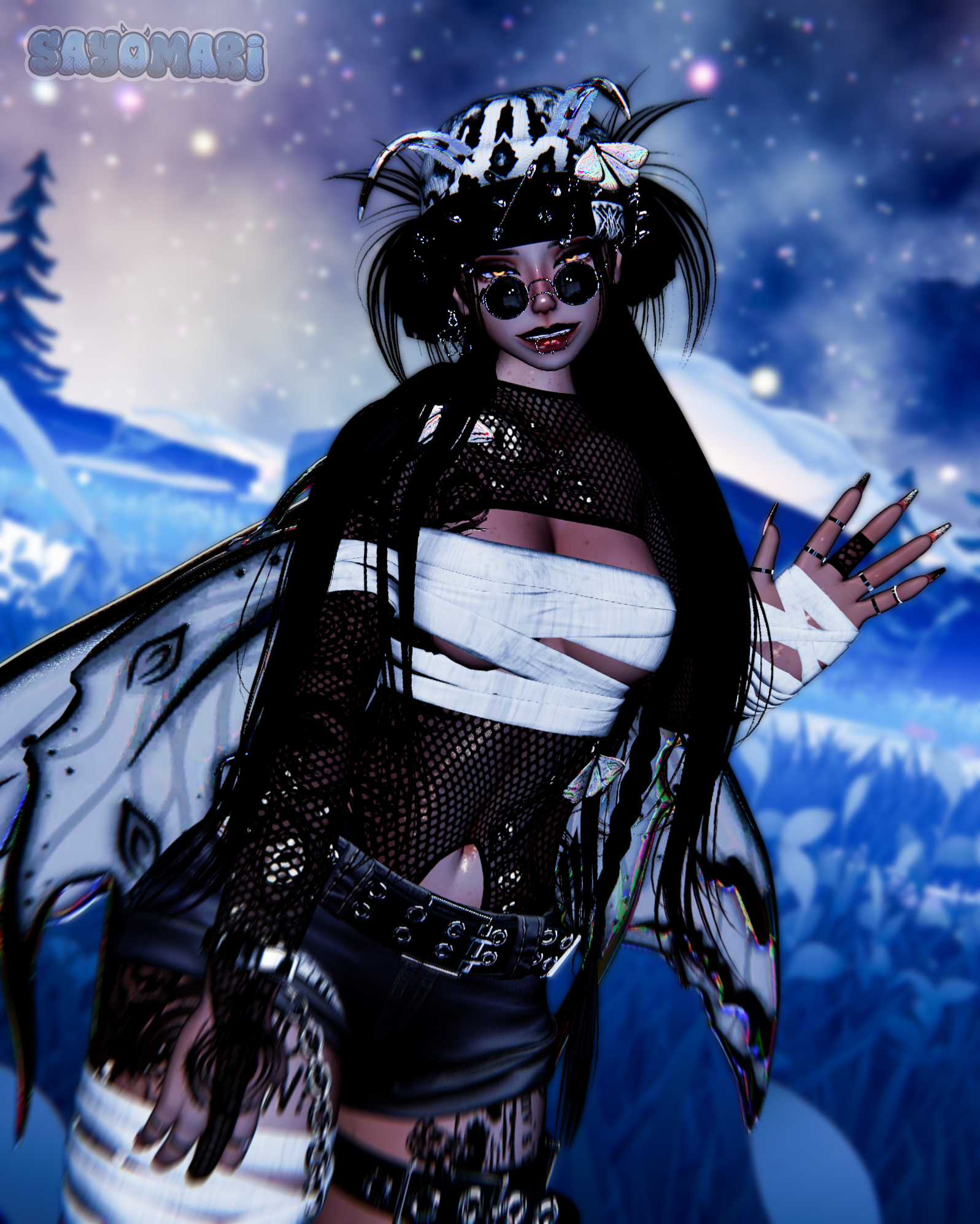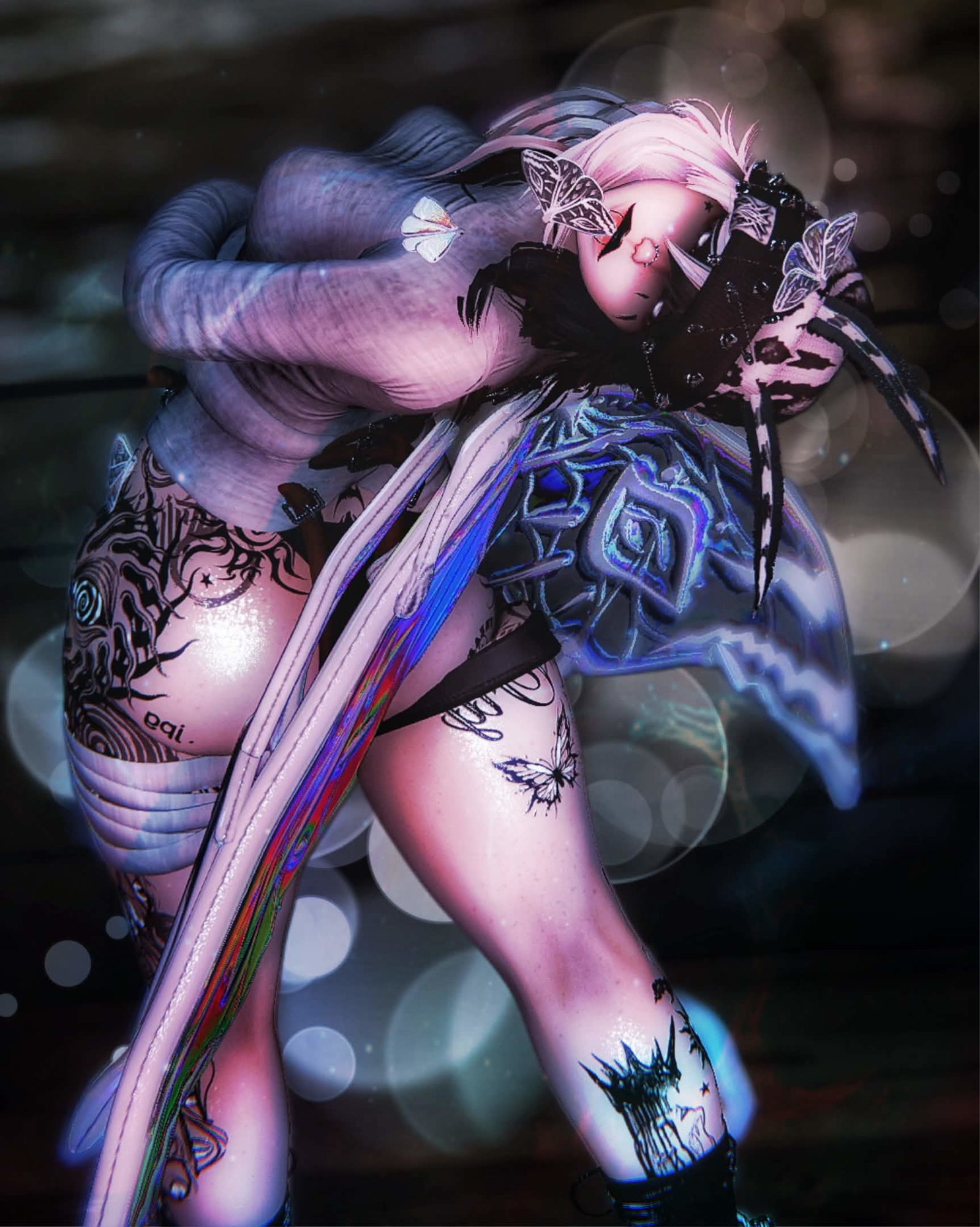 β€ Face & Body Wraps β€ Bracelet β€All Cuffs/Collar β€ Fishnet Bodysuit β€ Glasses β€ Choker β€ Necklace β€ Pasties β€ Tank β€ Straight Jacket β€ Leggings β€ Moths β€ Moth Wings/Antenna β€ Makeup/FaceShadow β€ Tattoos β€ Lamp β€ Fire Flies β€ Particle Textures/Drawings