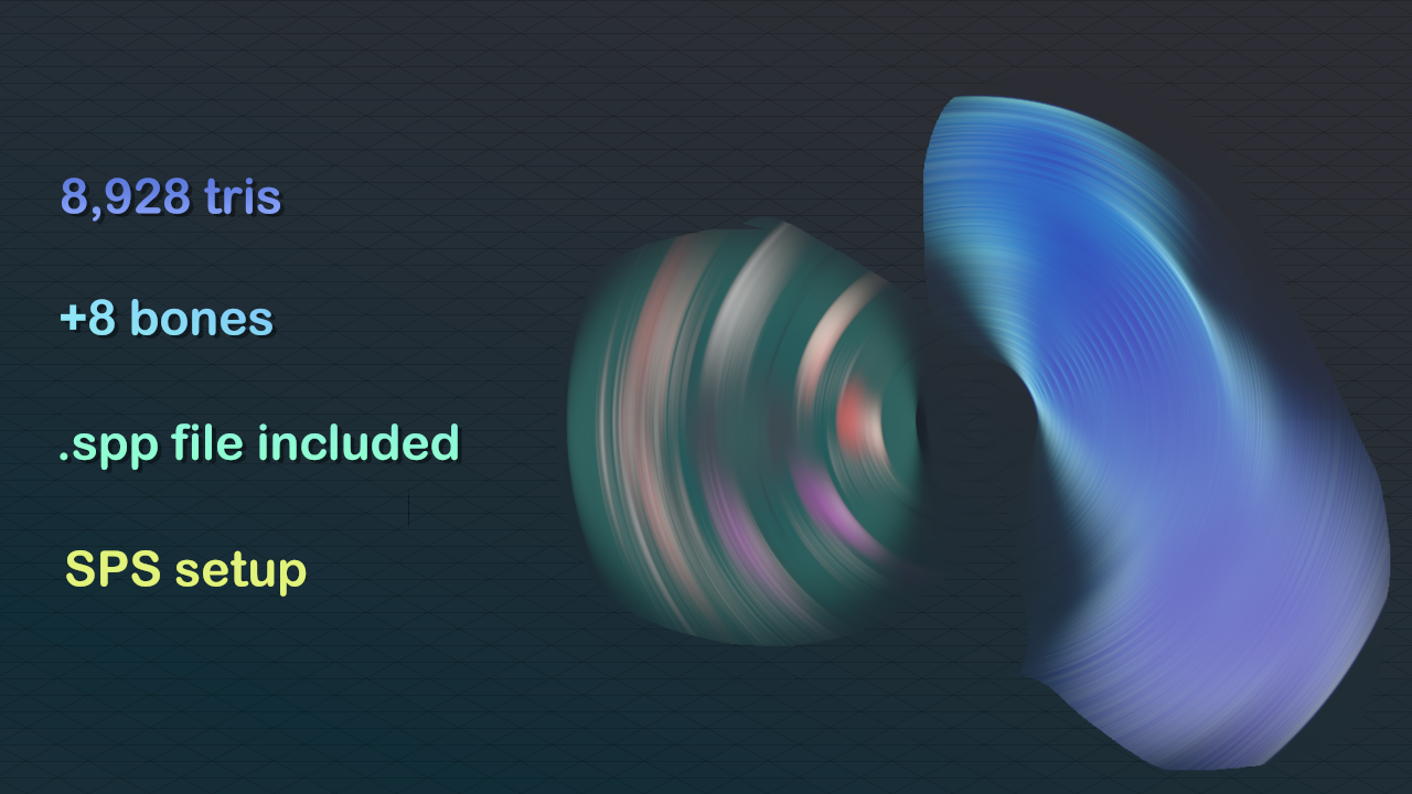 To install, be sure you have VRCFury and wholesome SPS installed in your Unity project, then place the "Hips" bone on your avatar. SPS plug is already pre-setup. .spp file included.
