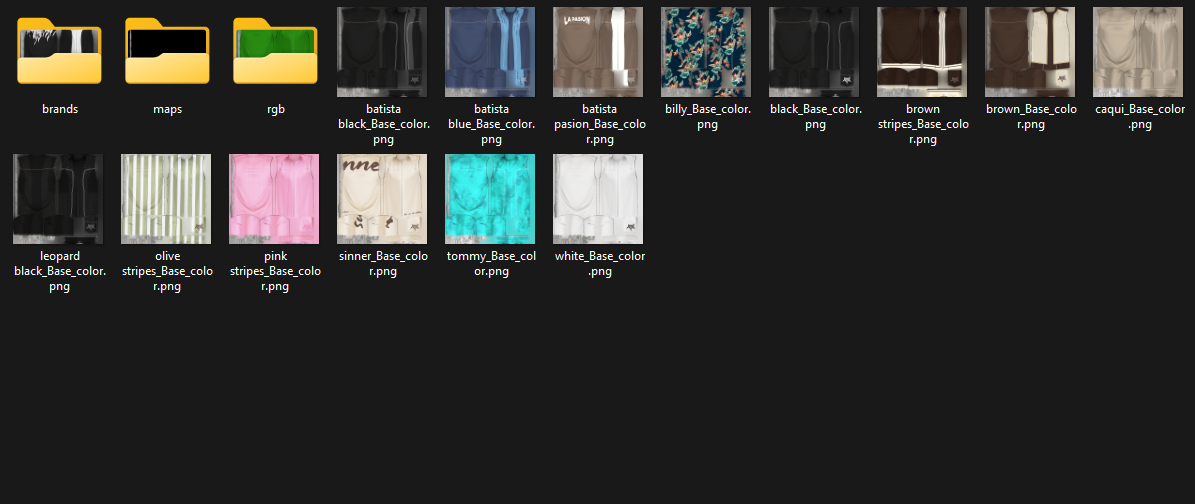 - toro shirt (24 textures) including 6 RGB (Red, Green, Blue)