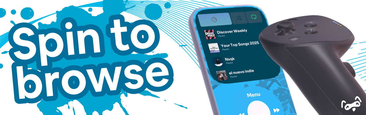 Control your Spotify® library from within VRChat. Browse playlists and select tracks using joystick controls or the VRChat menu.